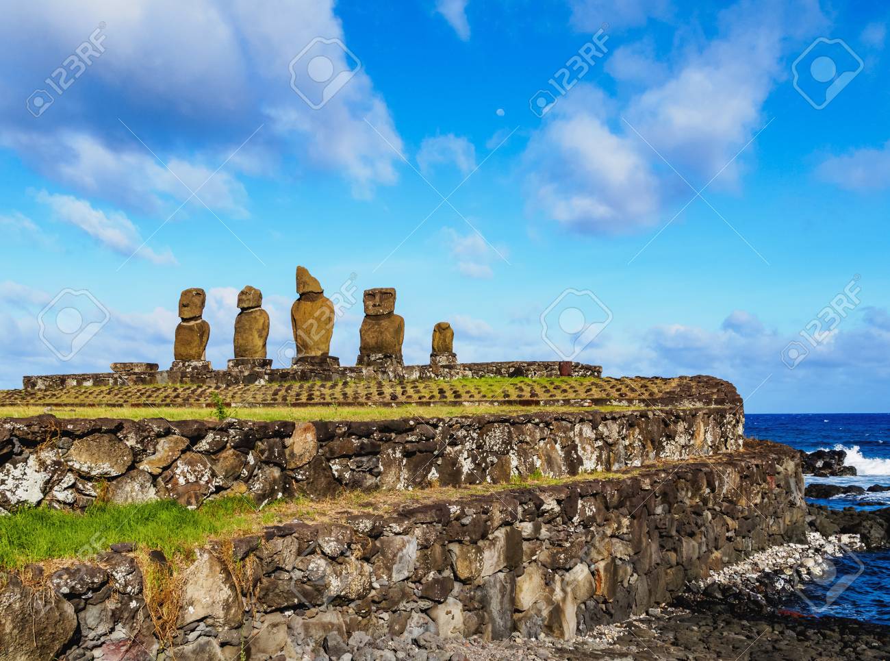 Ahu Tongariki, Easter Island – July 10, 2017: Moai altar of Tongariki, Easter Island