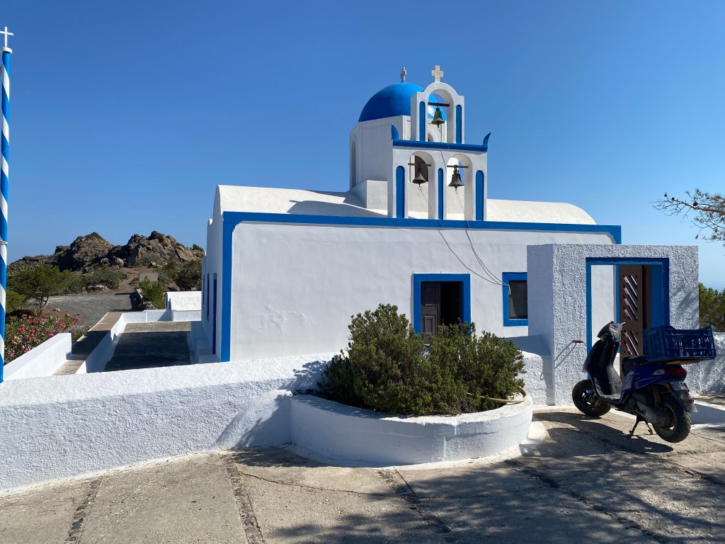 At the top of one peak, a classic Greek church awaited us…the story is that they are white with blue trim to match the country’s flag colors…and when the country was occupied, this was a way for them to still showcase their loyalty to their country:
