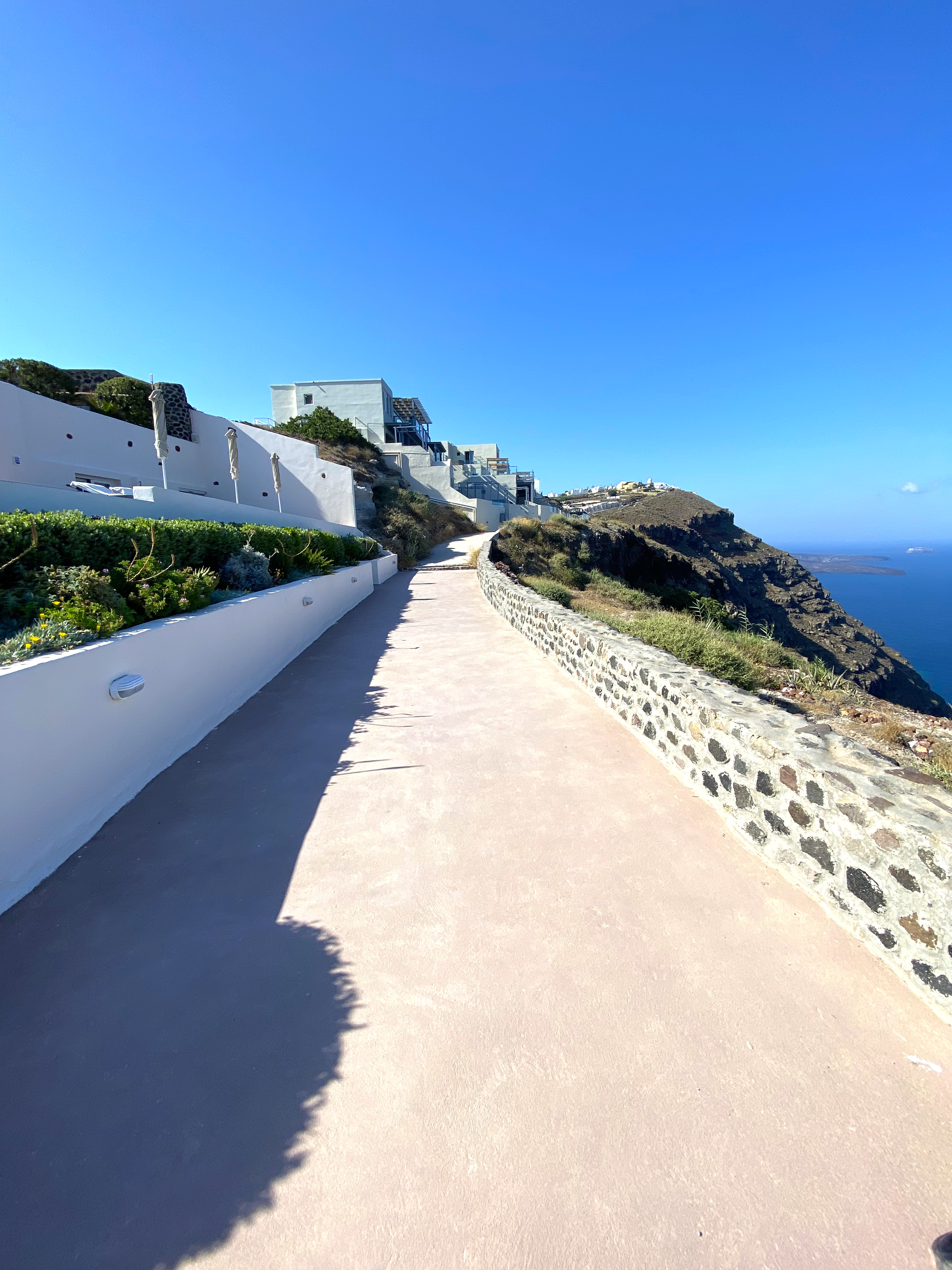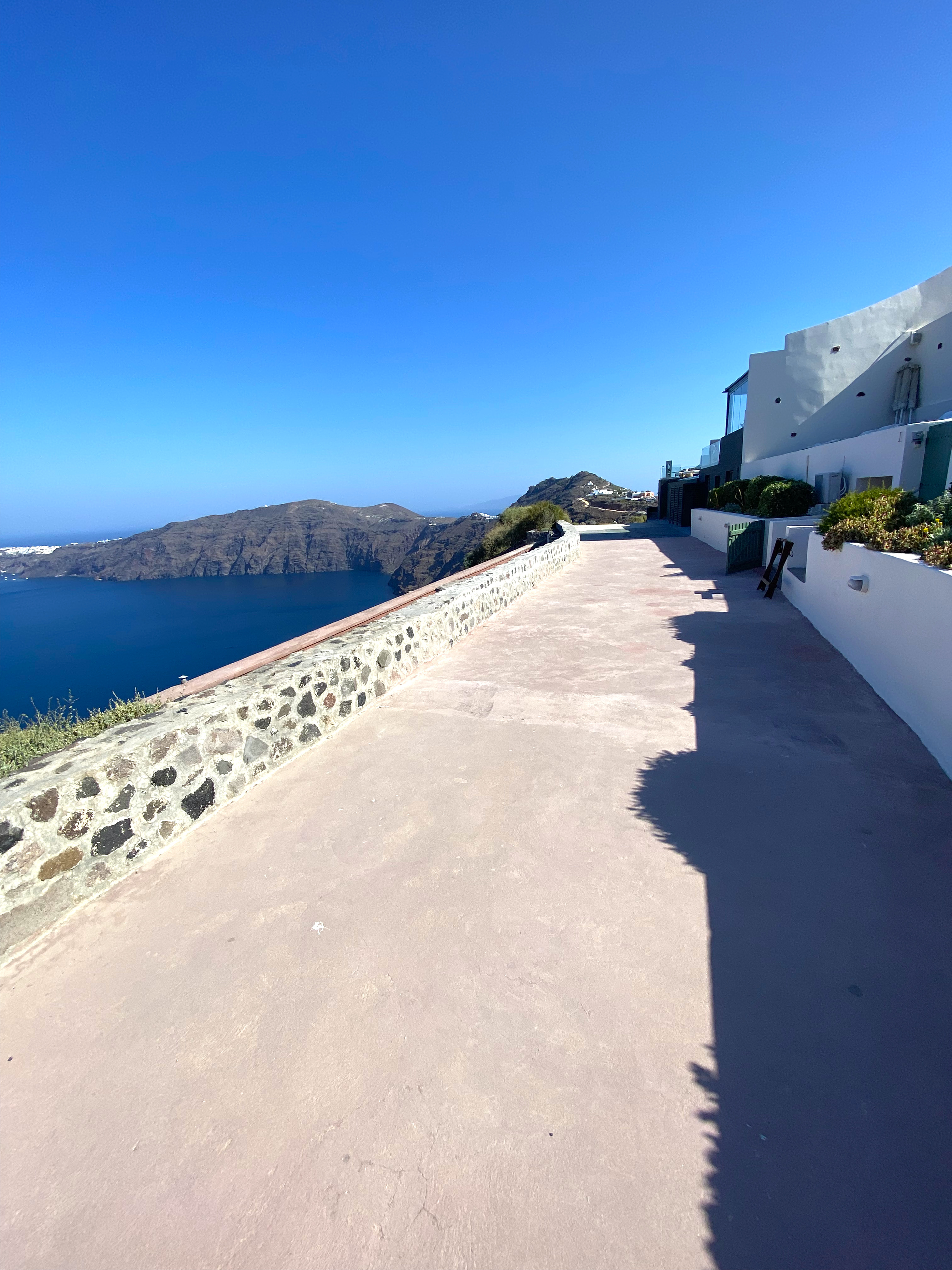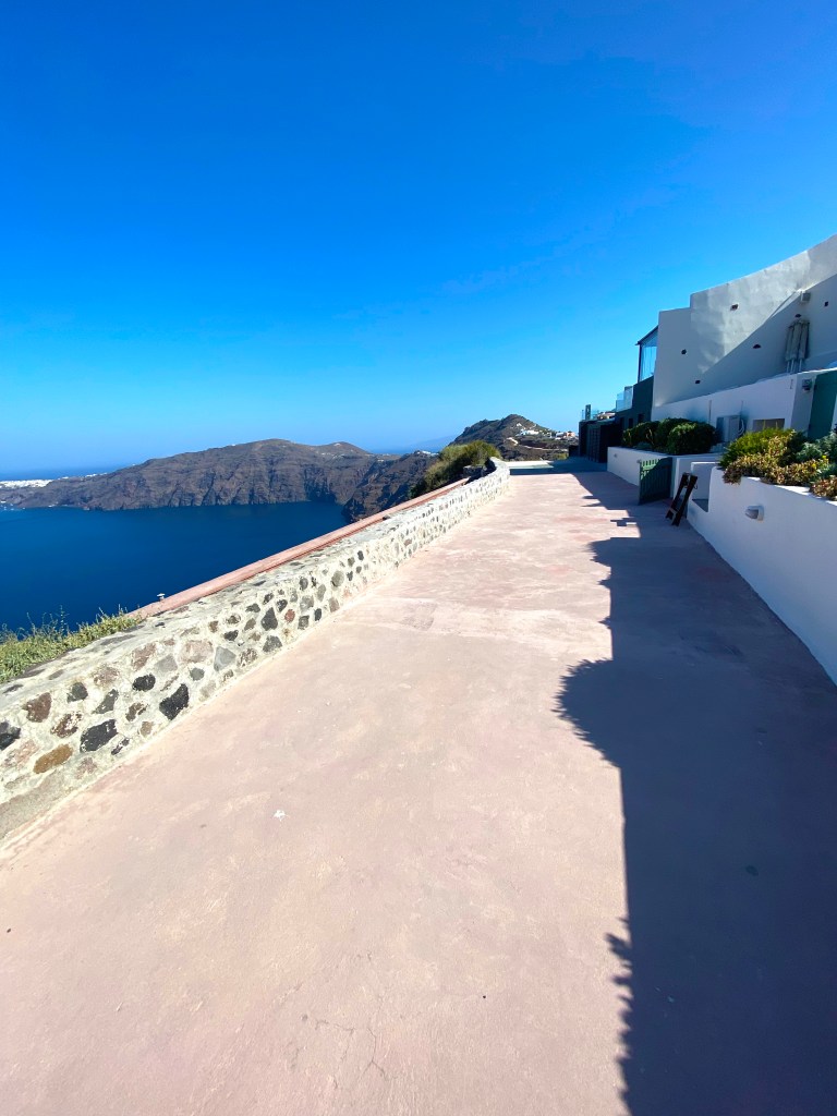 This is the path as it leaves Imerovigli – beautifully paved….and this is what it looks like as you start out with Oia there on the far left: