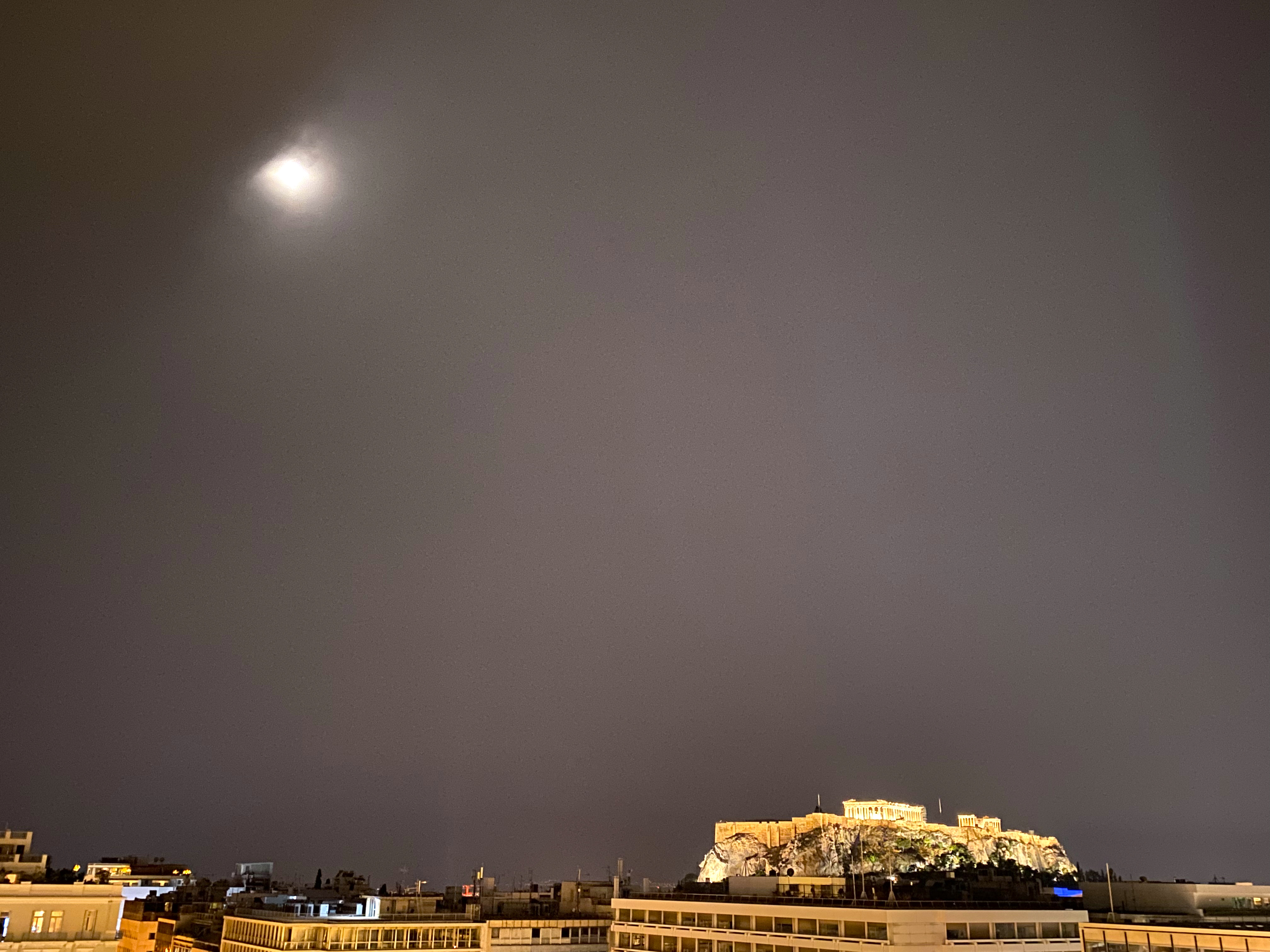 We loved the pom and circumstance of the ceremony – and yes, we also got to gaze out at The Acropolis at night as well, and what an incredible job they do lighting that up as well – with just a little help from the moon:
