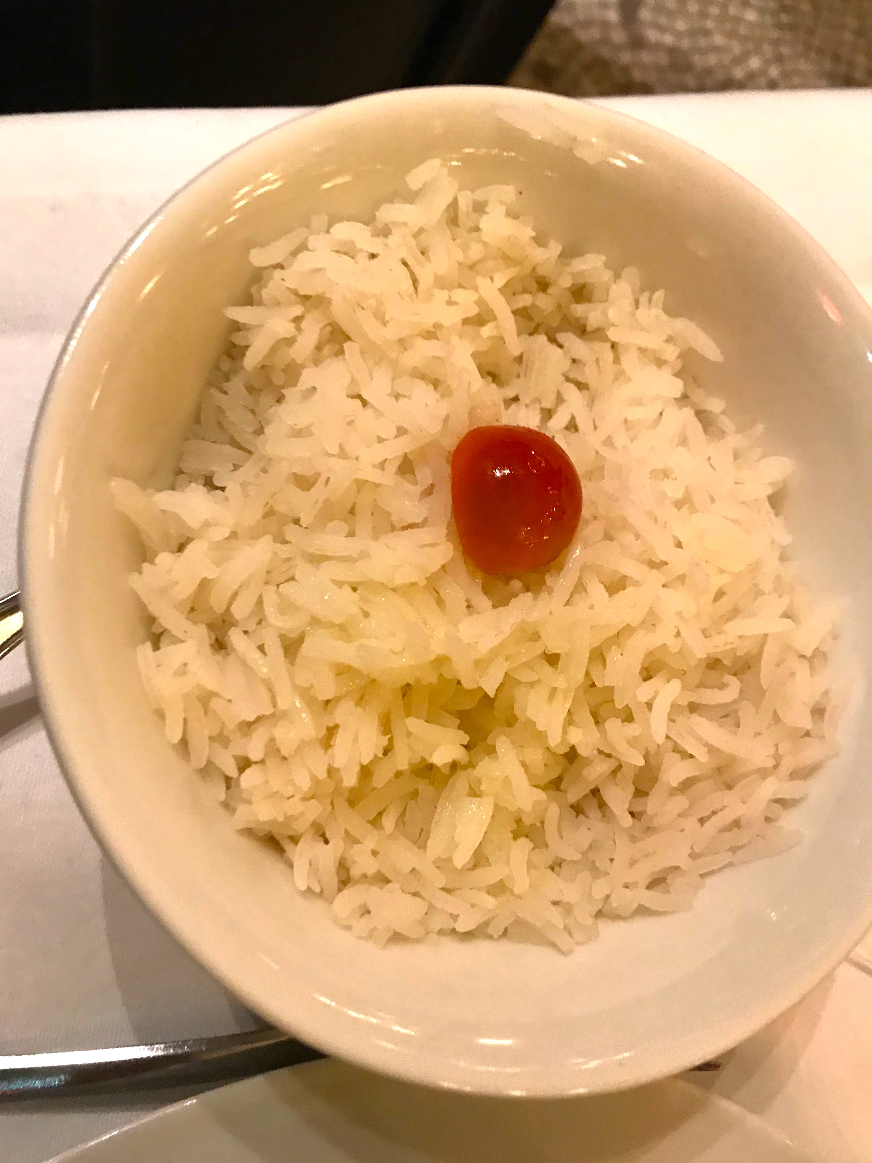 The braised chunks of veal were smothered in a rich creamy gravy, along with morel mushrooms, chunks of carrot and pearl onions. A small dish of white rice was served alongside.