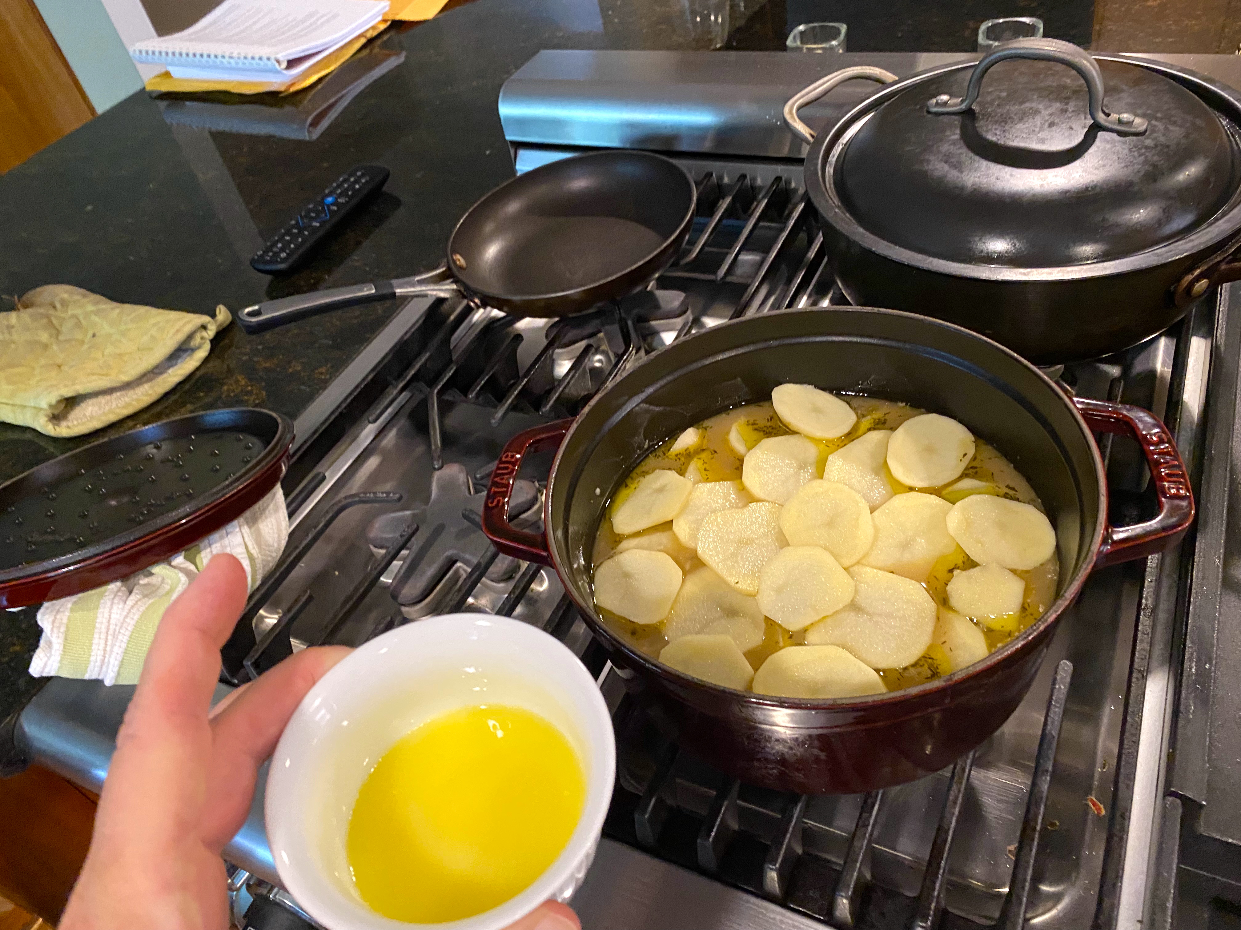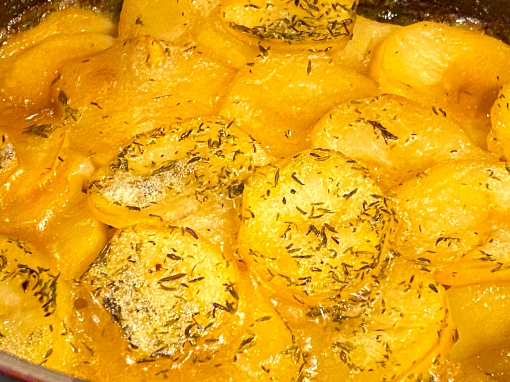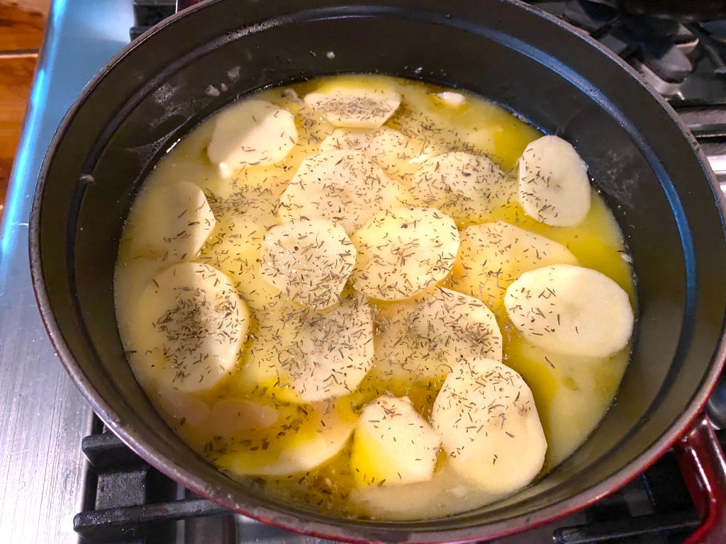 - 1½ lb potatoes, peeled and cut into ⅛-inch thick slices