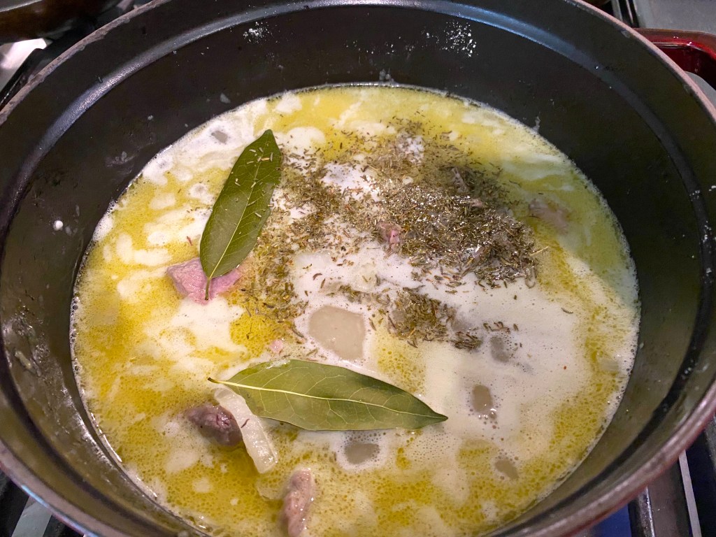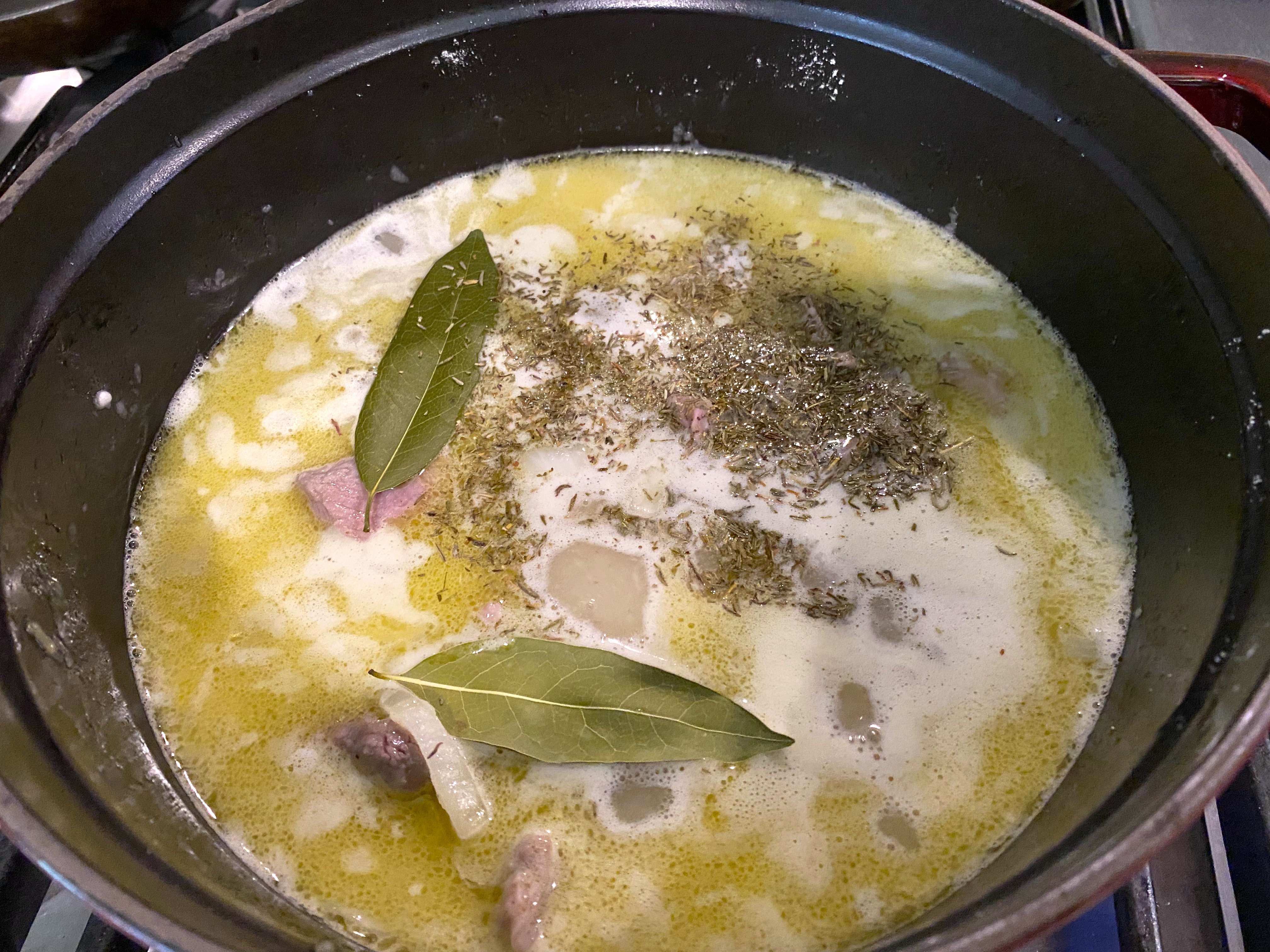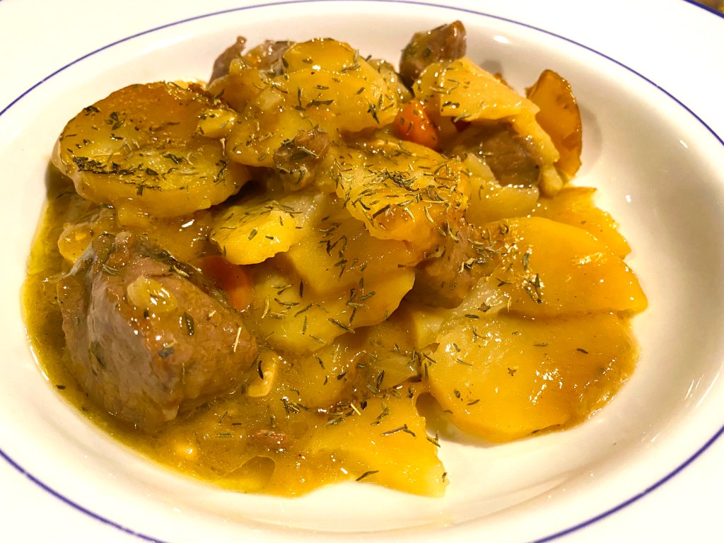 I loved this dish: it was rich, hearty and flavorful! Big chunks of tender lamb in a creamy sauce with potatoes and carrots giving it a satisfying heft!