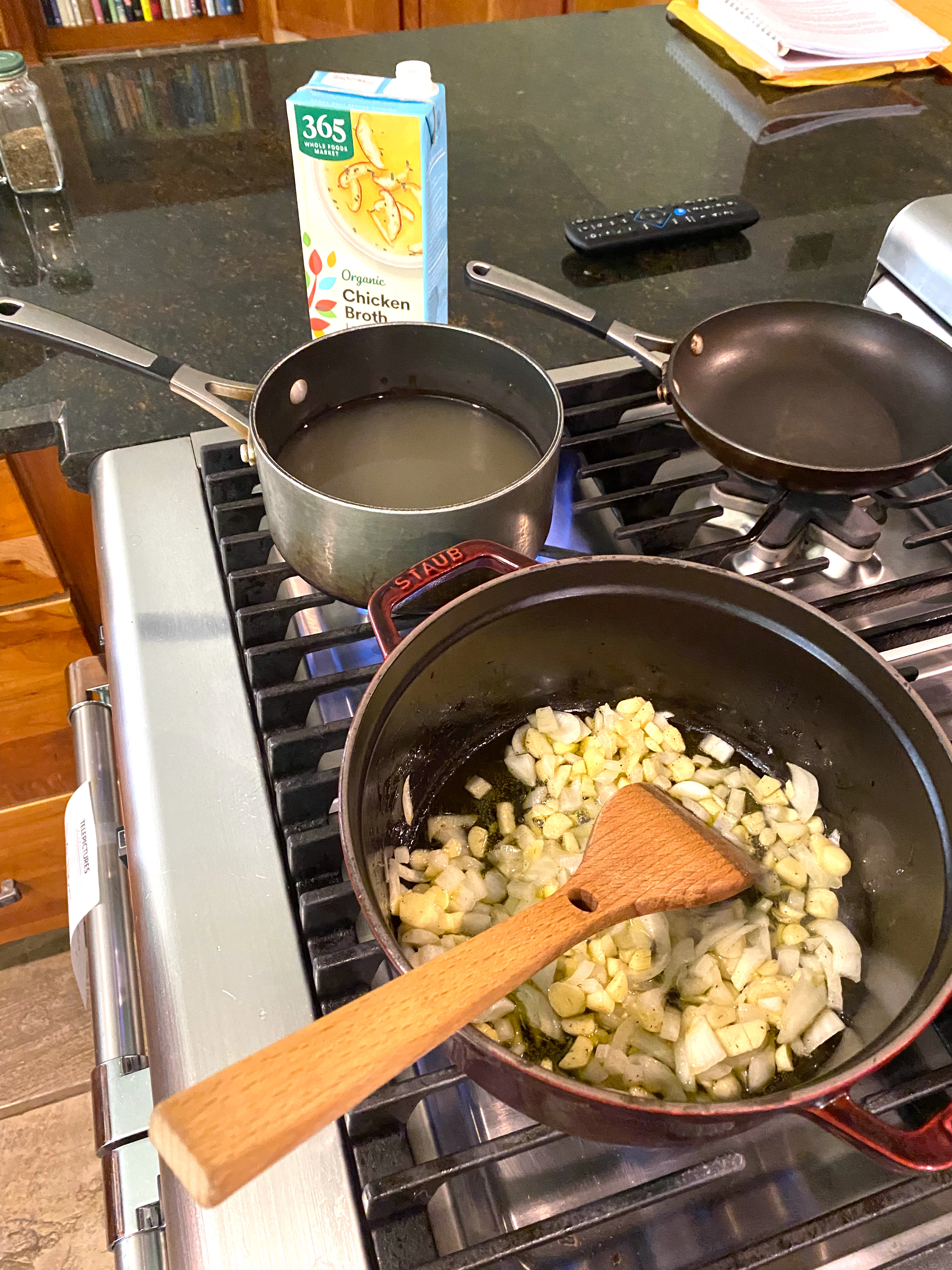 As I sautéed some garlic and onion in olive oil, I followed Carol’s terrific recipe: