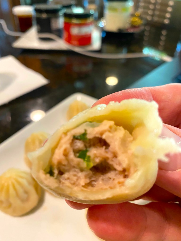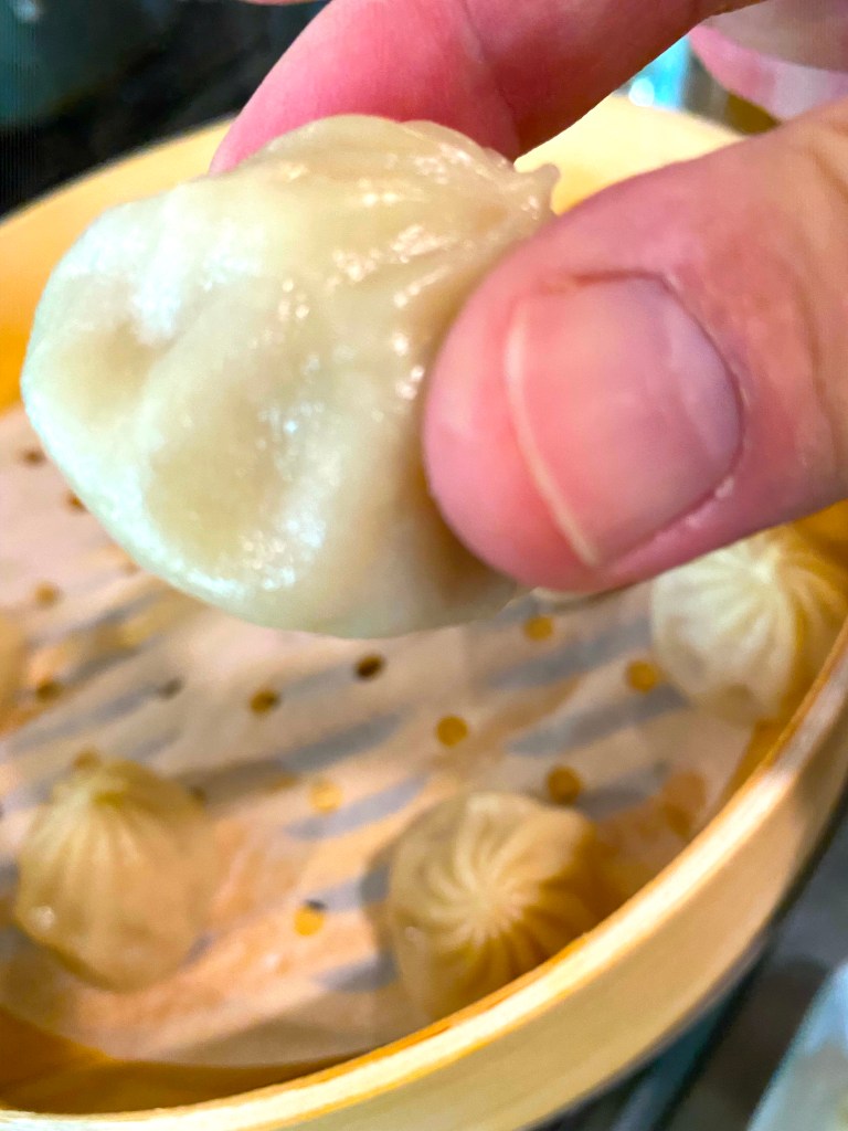Soup Dumplings are supposed to be eaten by taking a small bite out of the corner and slurping up the soup inside – and then eating the rest.