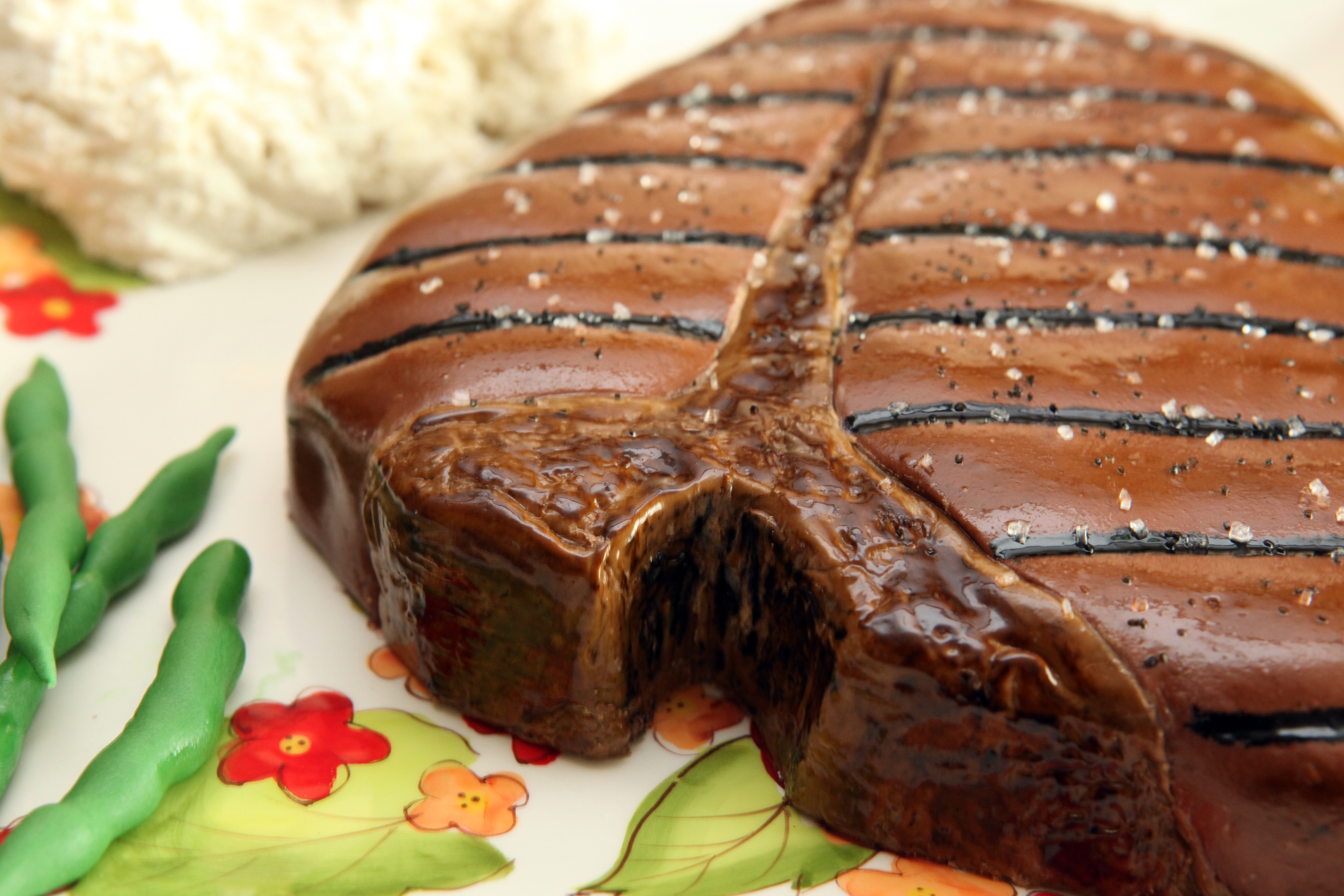 First of all, thanks to my friend Casey, who sent me this – a delicious Chocolate Cake beautifully prepared in the shape of a thick T-Bone Steak!