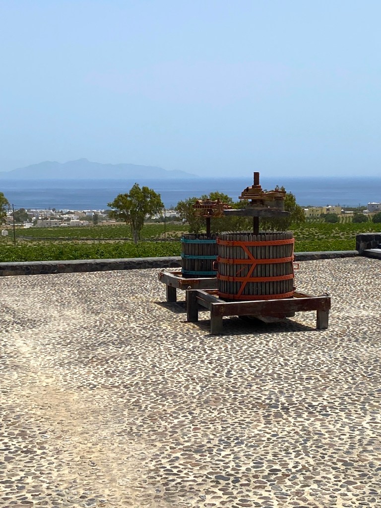 Their winery overlooks the Aegean Sea on the opposite side of the island from the Caldera – and the views are gorgeous here!