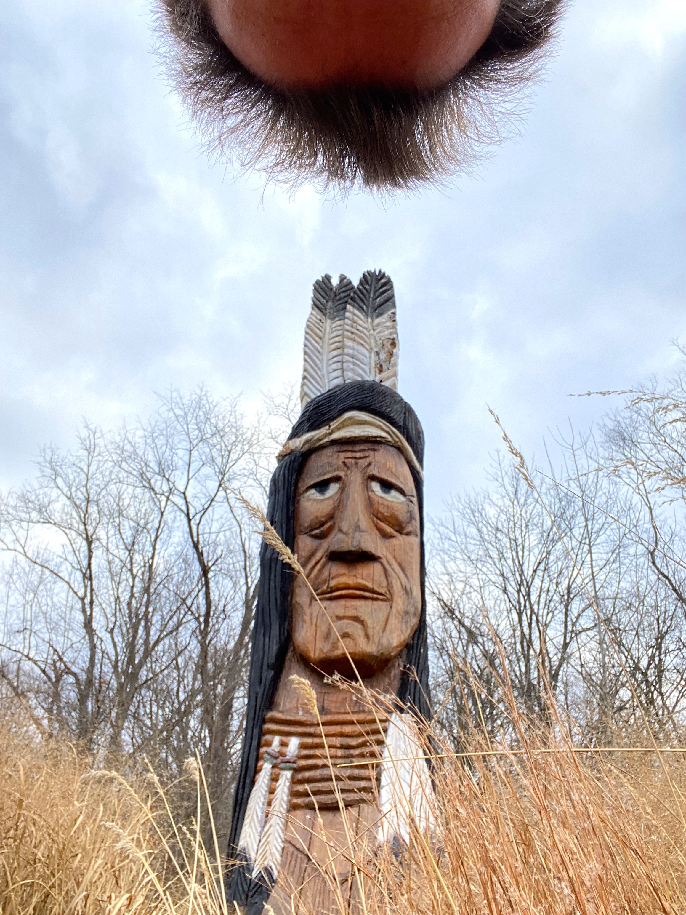 I’m just hanging around with a vintage totem pole in a park near Akron, Ohio. How did I get here?