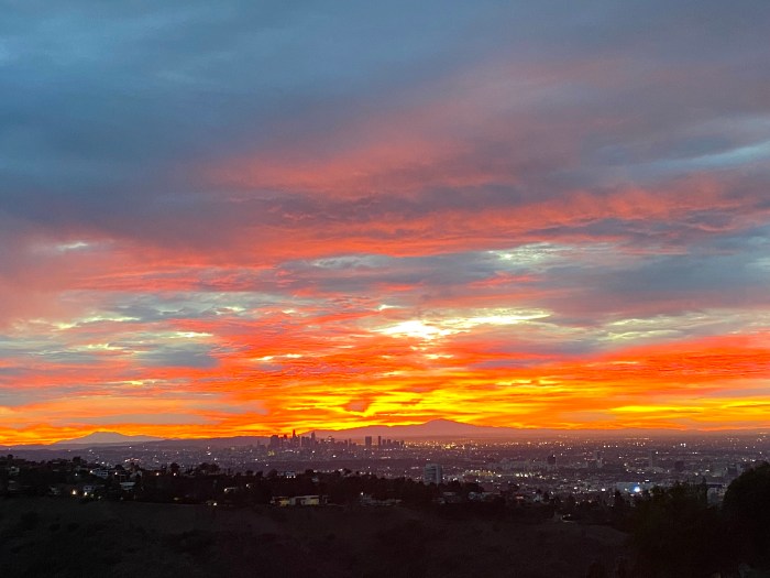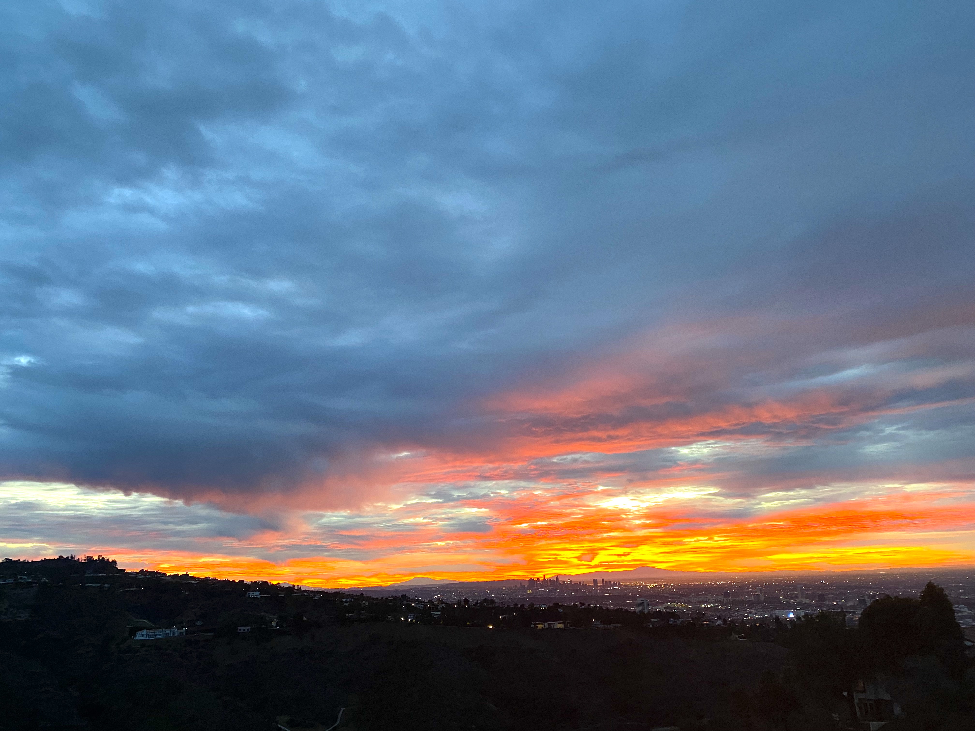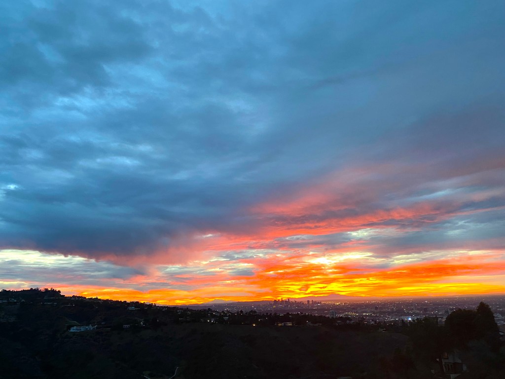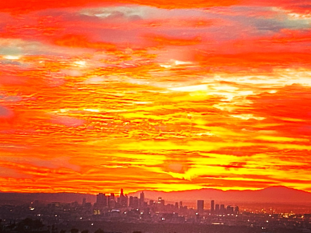 We have an old saying, “Red sky in the morning, Shepherd’s warning.” It usually indicates wet weather, though that presumably doesn’t apply in sunny Los Angeles. 🙂