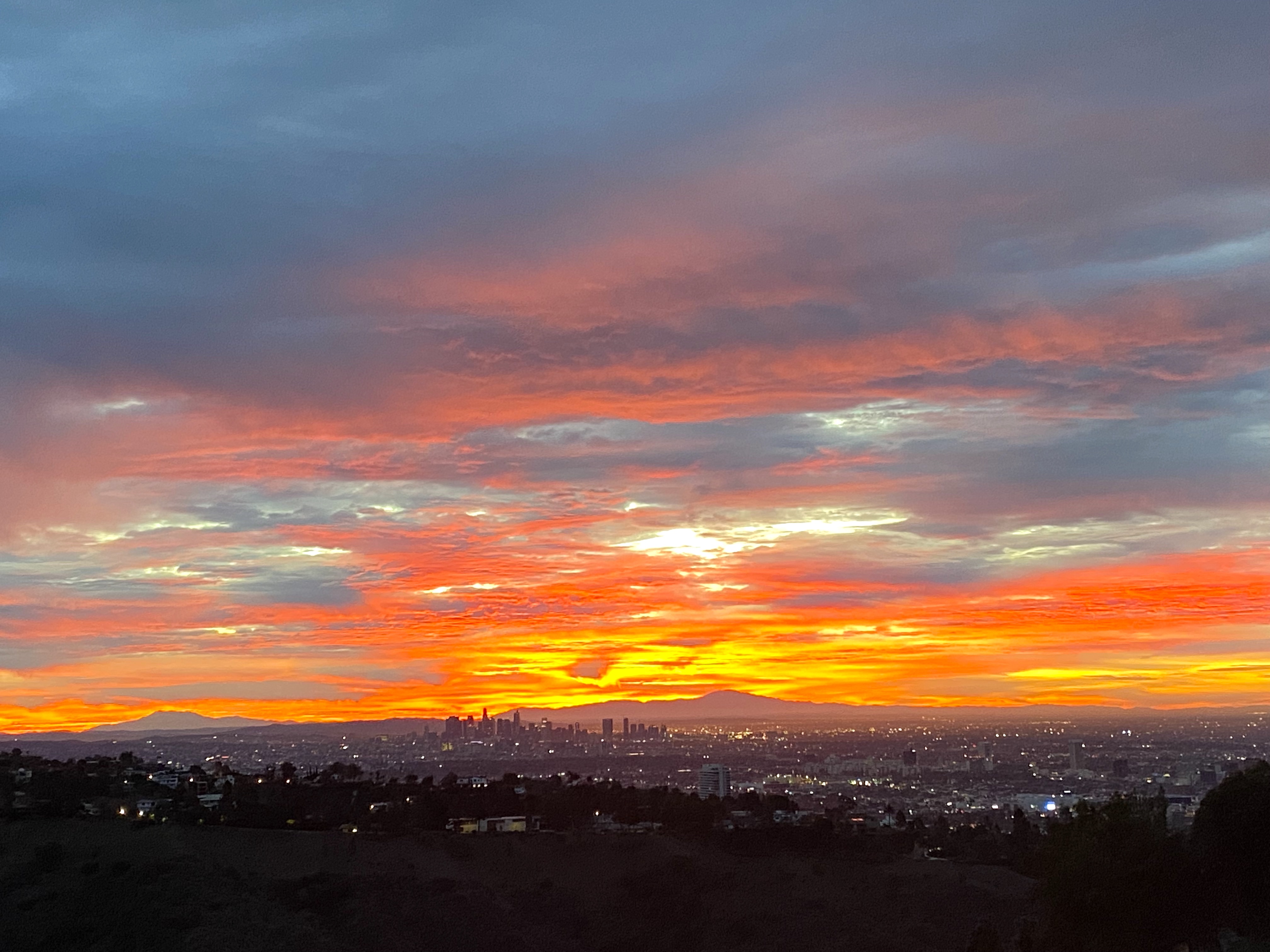 We live in a cult-de-sac, and at the top, there are spectacular views of the entire LA basin..which was just waking up….