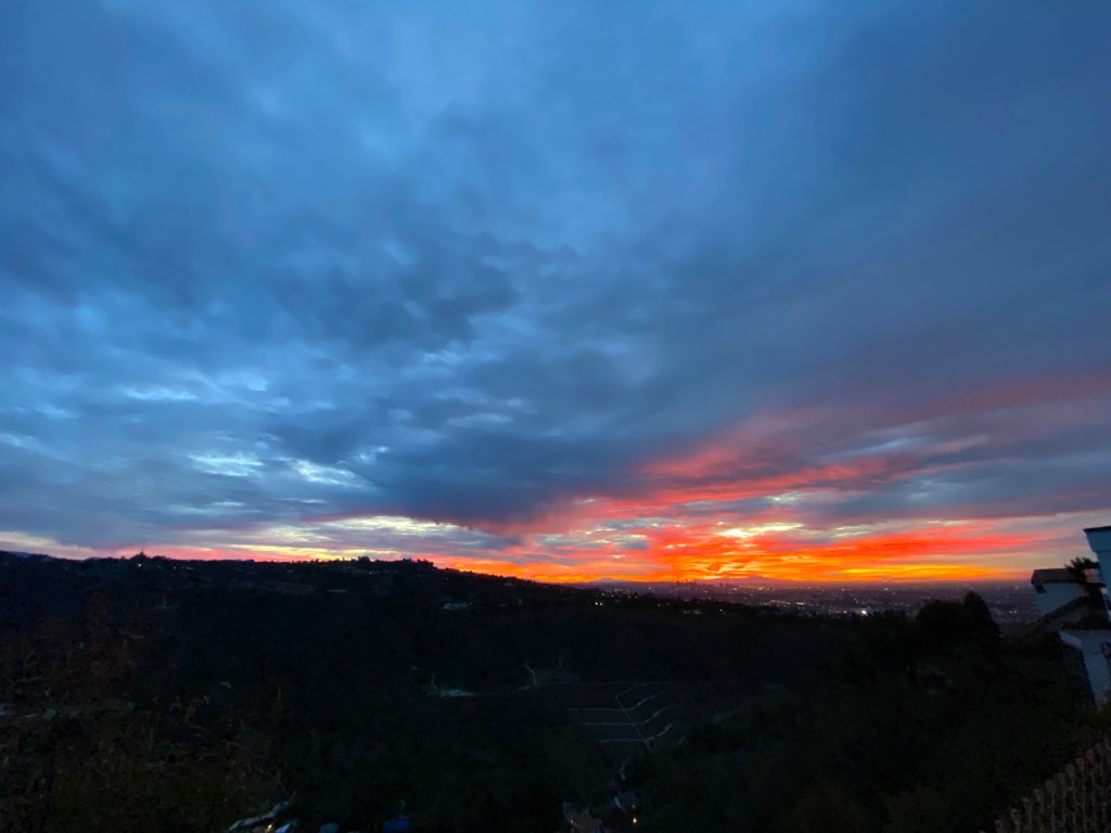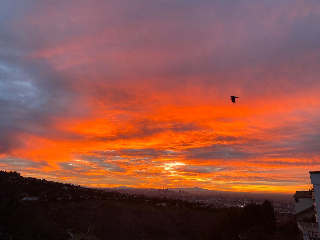 We are 9.8 miles away from downtown Los Angeles, and the view from the high part of Beverly Hills offers this stunning view, which today was being lit by a spectacular sunrise…