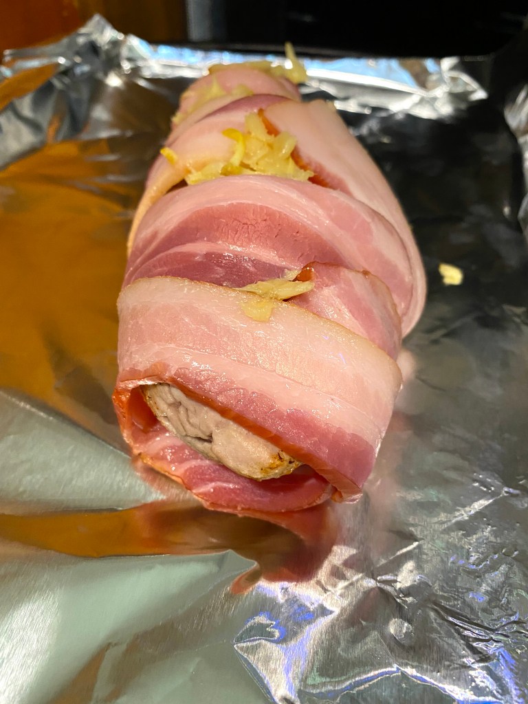 Chef recommended 20 minutes or so for the pork, but I gave it a bit longer as my bacon was a bit thicker and I wanted to make sure everything was done…