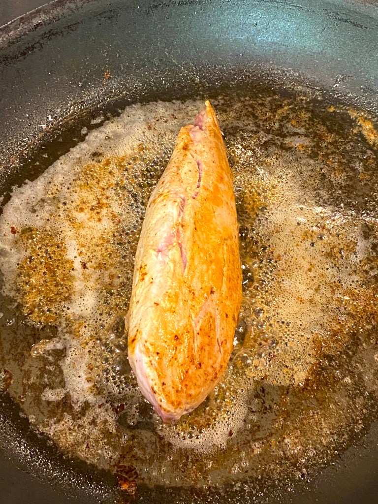 With the Garlic Confit done, time to sear the Pork Tenderloin!