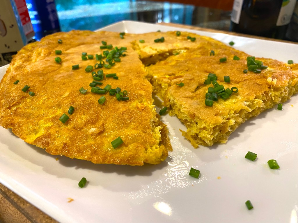 I slid the tortilla onto a plate and added chopped chives…that’s it, the dish was done!