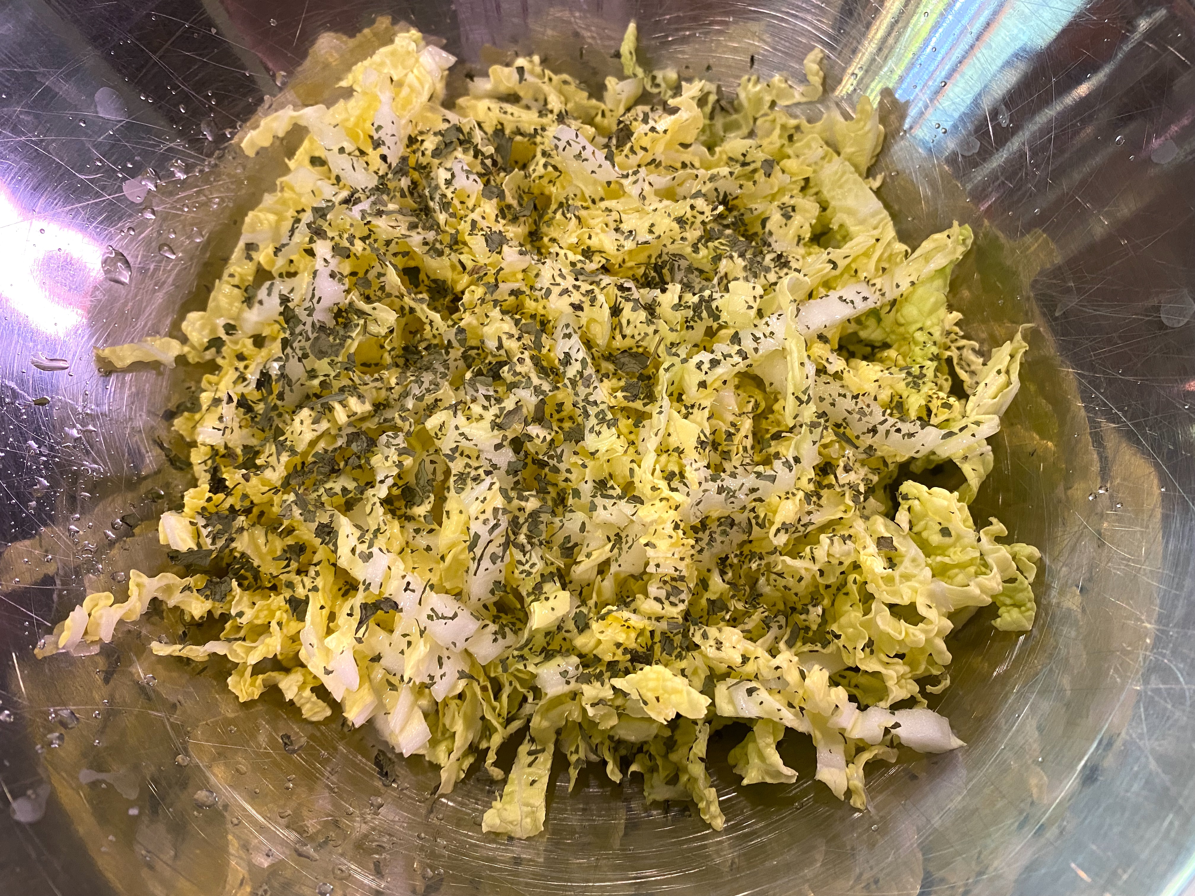 This is very straightforward: shred two cups of cabbage into a bowl, and add a quarter cup of cilantro and the juice of 2 limes…
