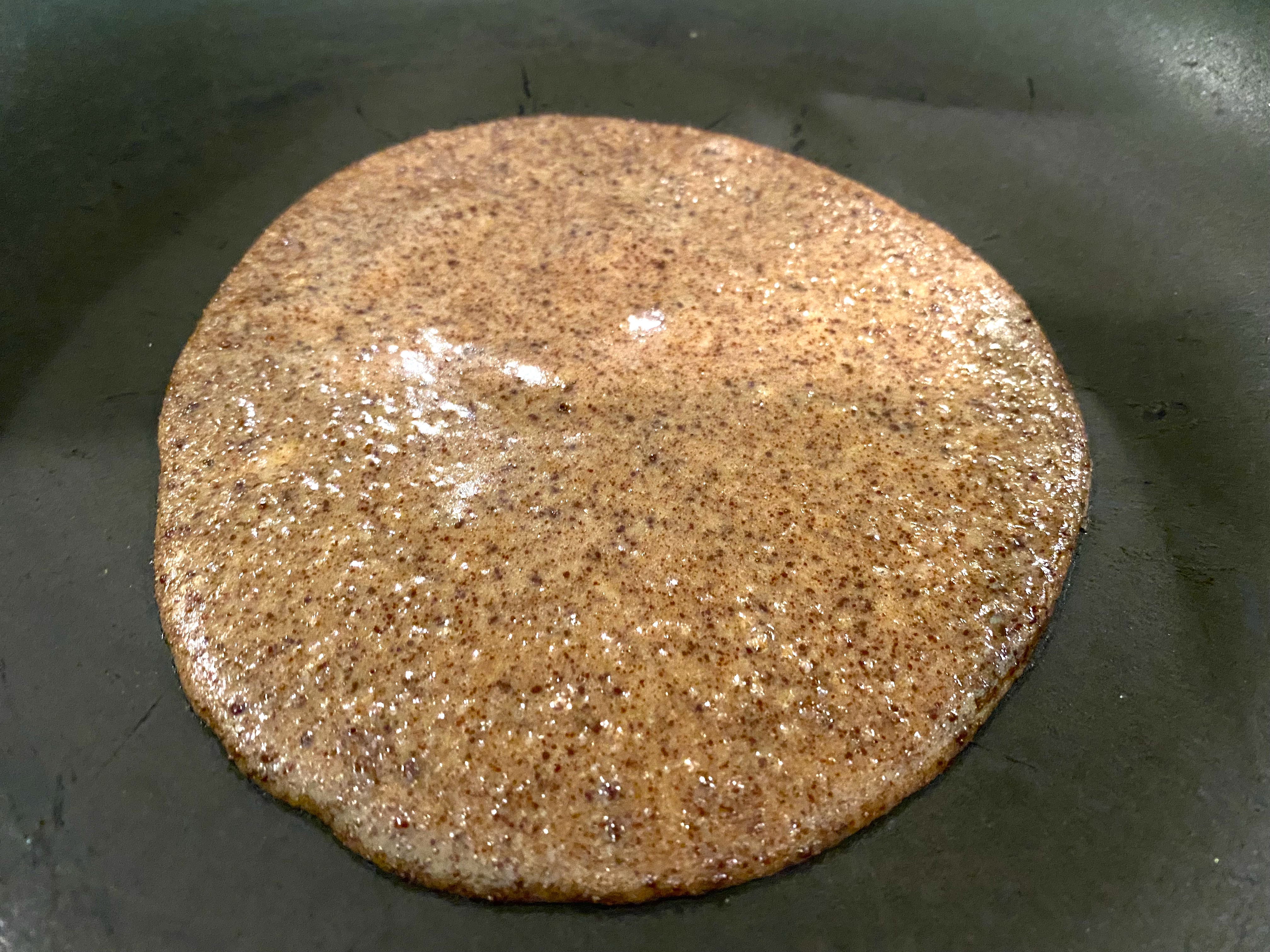 After cooking until the edges begin to look dry – only 2-3 minutes, loosen the edges with a spatula and flip it over for a minute…here’s how it went, oh and I am sharing this even though I look like a bit of an idiot: