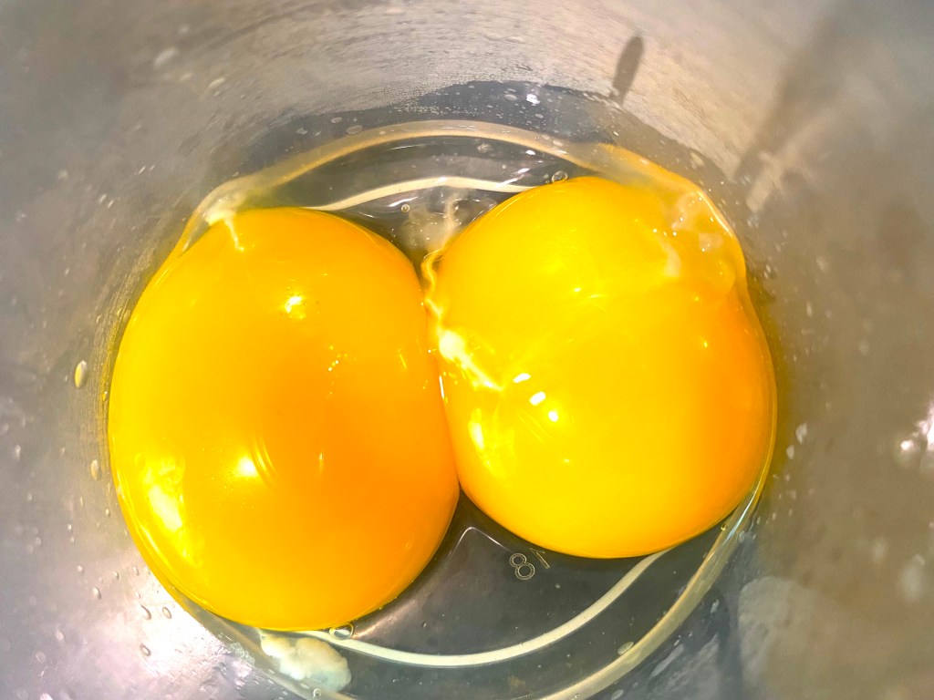 Combine the ingredients, and don’t forget to set aside those two egg yolks for later…