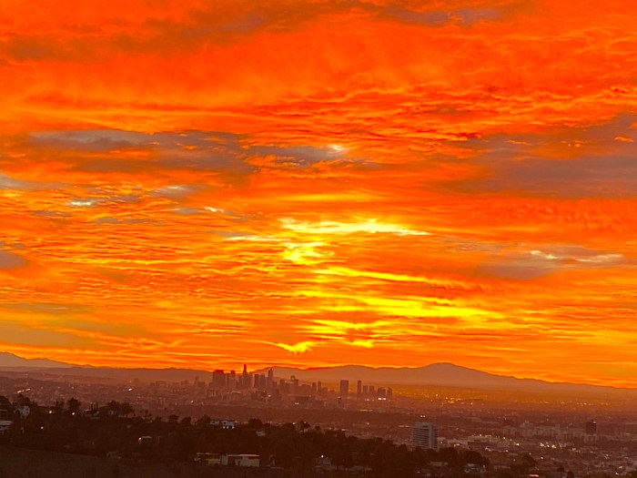 This was my view one morning from the top of Beverly Hills – looking at a sunrise over downtown Los Angeles…see the video and more here: