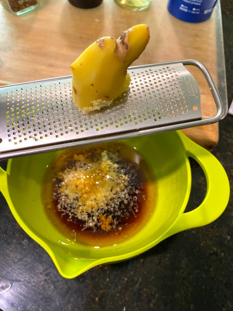 I love fresh grated ginger so I added a bit more – the “Jazz Cook” in me! Stir this all together and set aside, and it’s time to make the pancake filling!