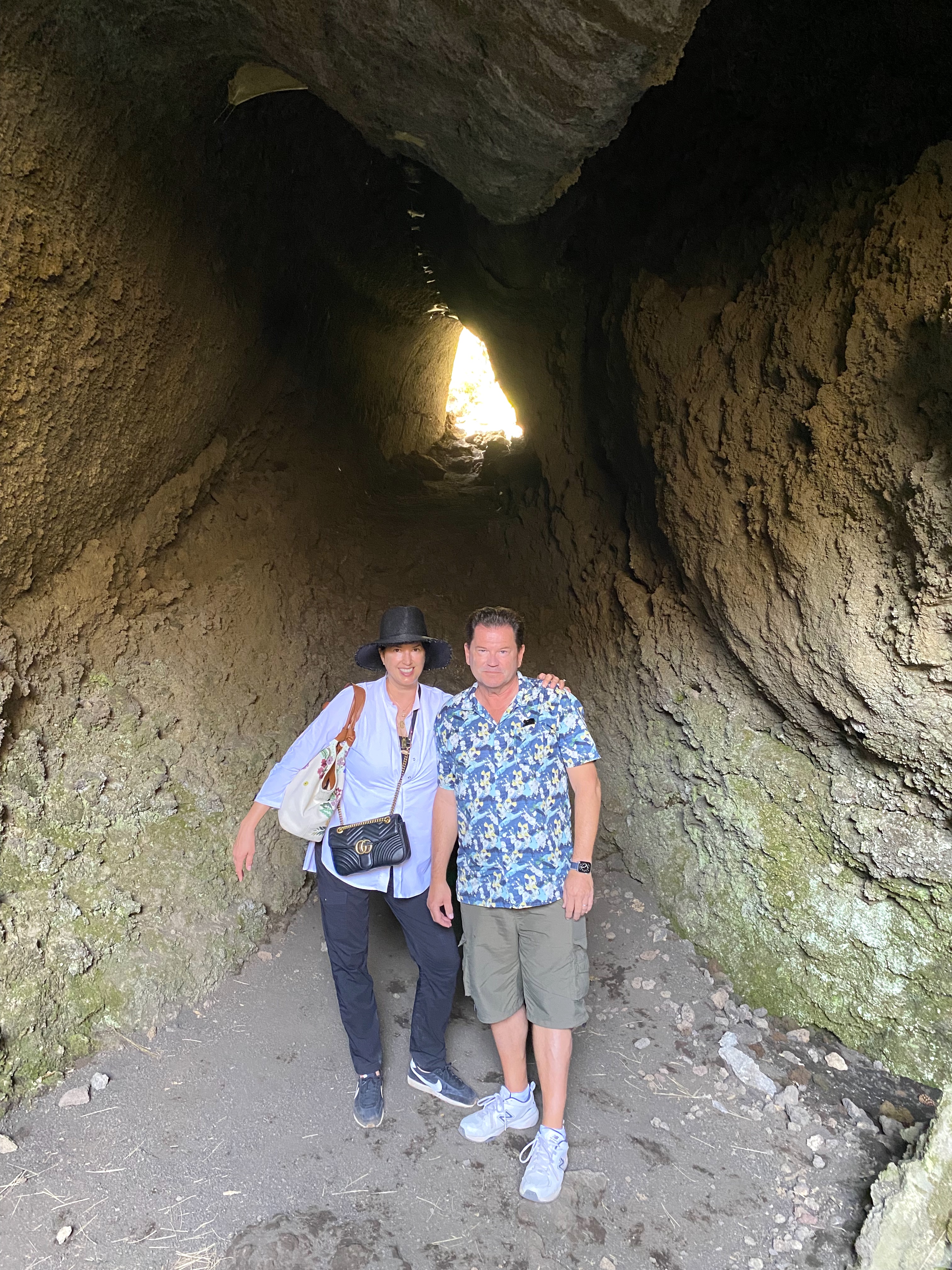 As we climbed up this hill, it turns out it was a hill of frozen lava that had formed caves underneath!