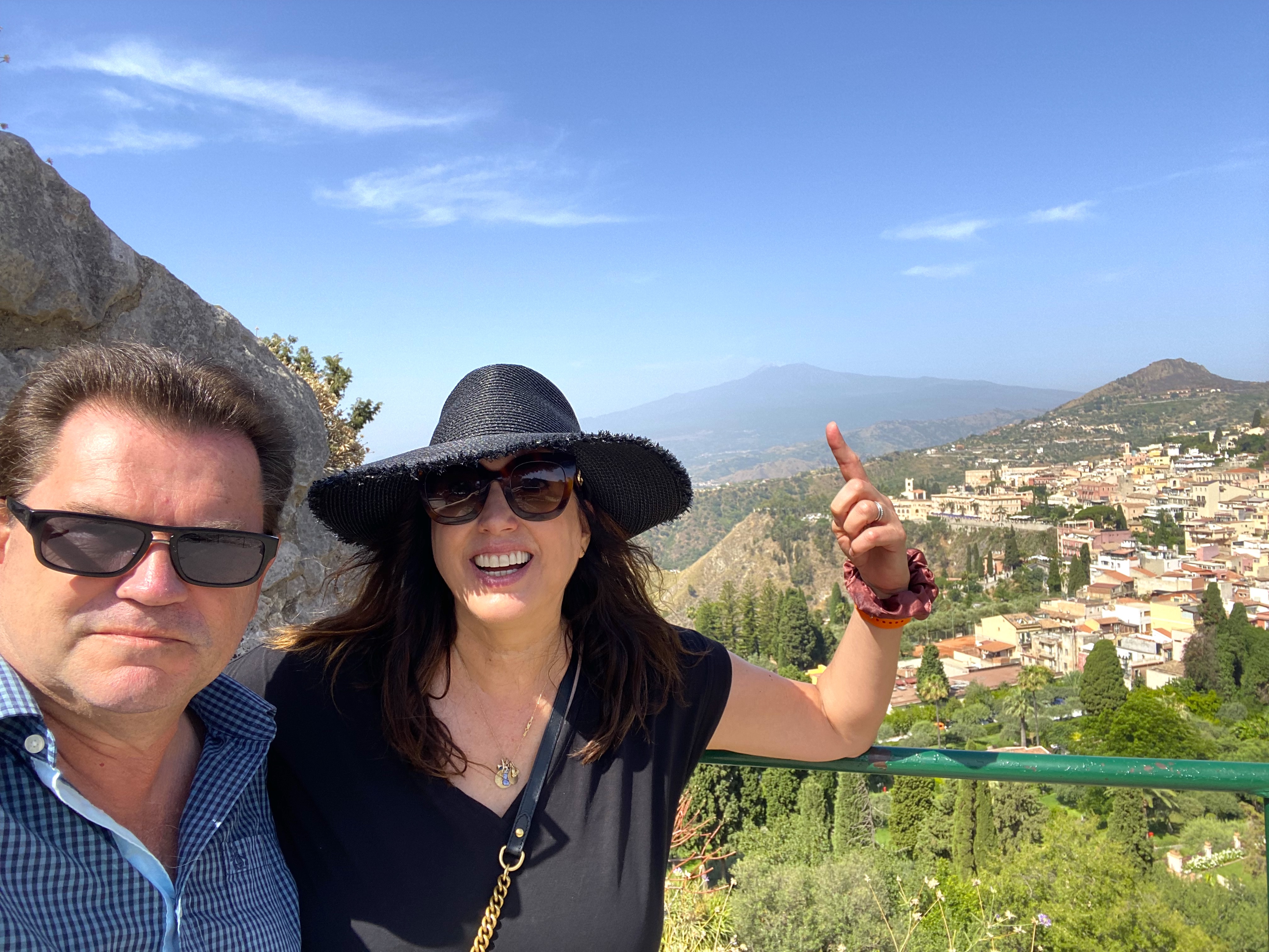This was the first time we saw it, rising above the mountain town of Taormina – but little did we know that thanks to an amazing tour guide, we’d be climbing it!