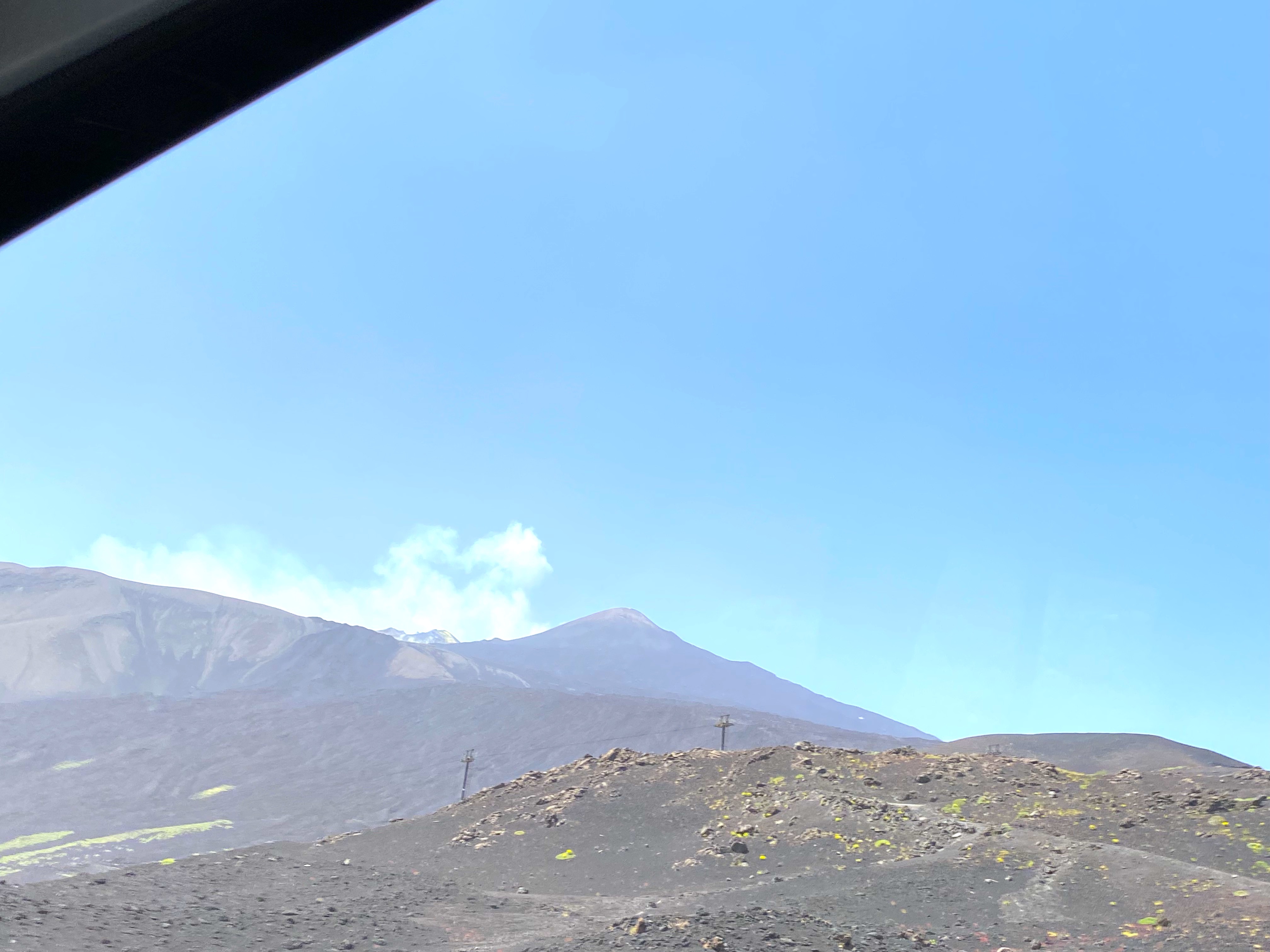 As you can see, that’s an active volcano smoldering above Sicily – and there is a very rough road that is used by Scientists to drive toward the top of the volcano in order to monitor the mountain’s activity – and we got to go along with them!