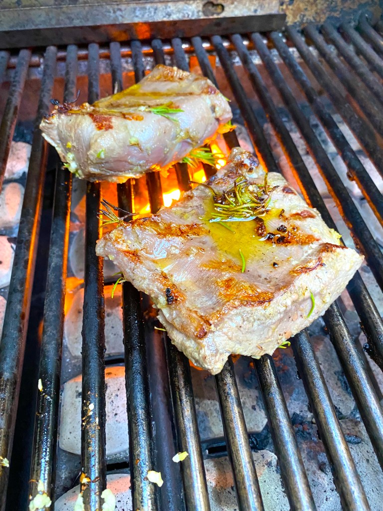 5 minutes on each side worked for me…I removed the lamb from the grill, let it sit for a few minutes before I thinly sliced it against the grain.