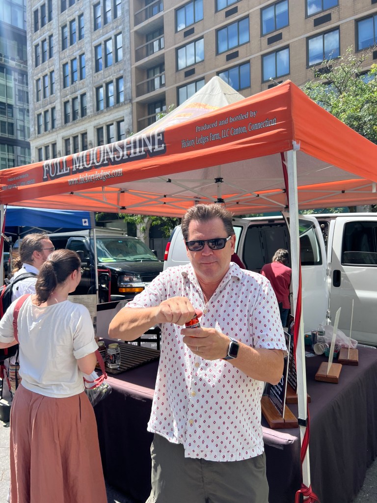 That’s because a walk of two miles took us to New York’s terrific Union Square Farmers Market – and that led me to discover Moonshine!