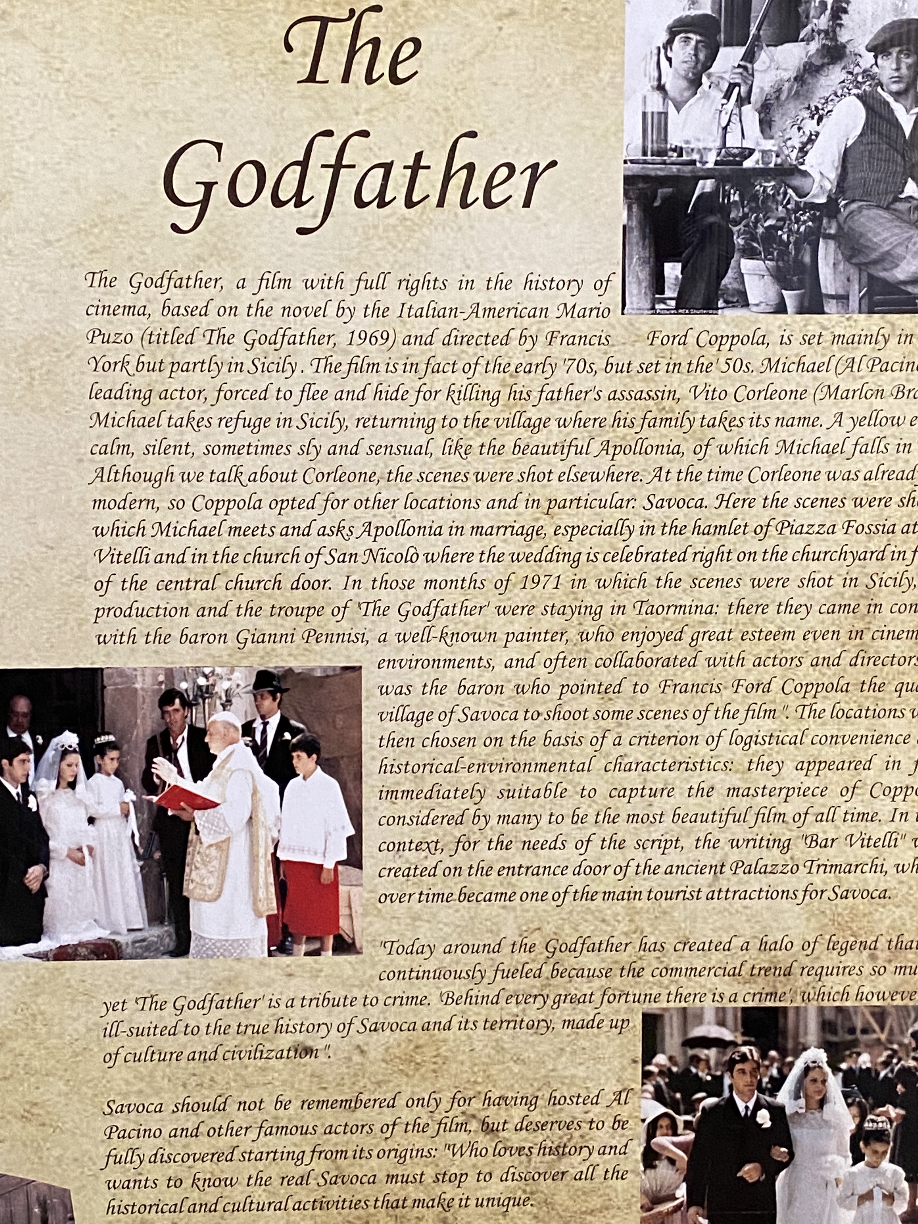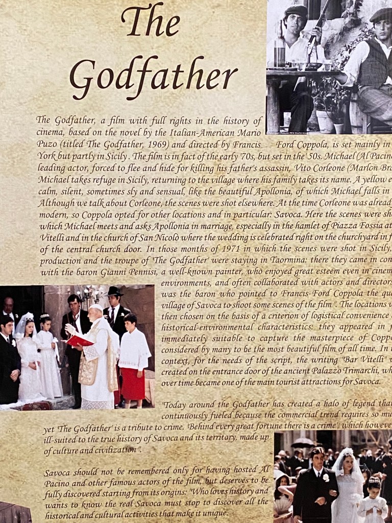 “Savoca and Forza d’Agrò are the two most famous filming locations of The Godfather movies in Sicily. These small medieval villages were featured in some of the most iconic scenes in the movie, such as Michael Corleone’s first meeting with Apollonia’s father, and the wedding.”