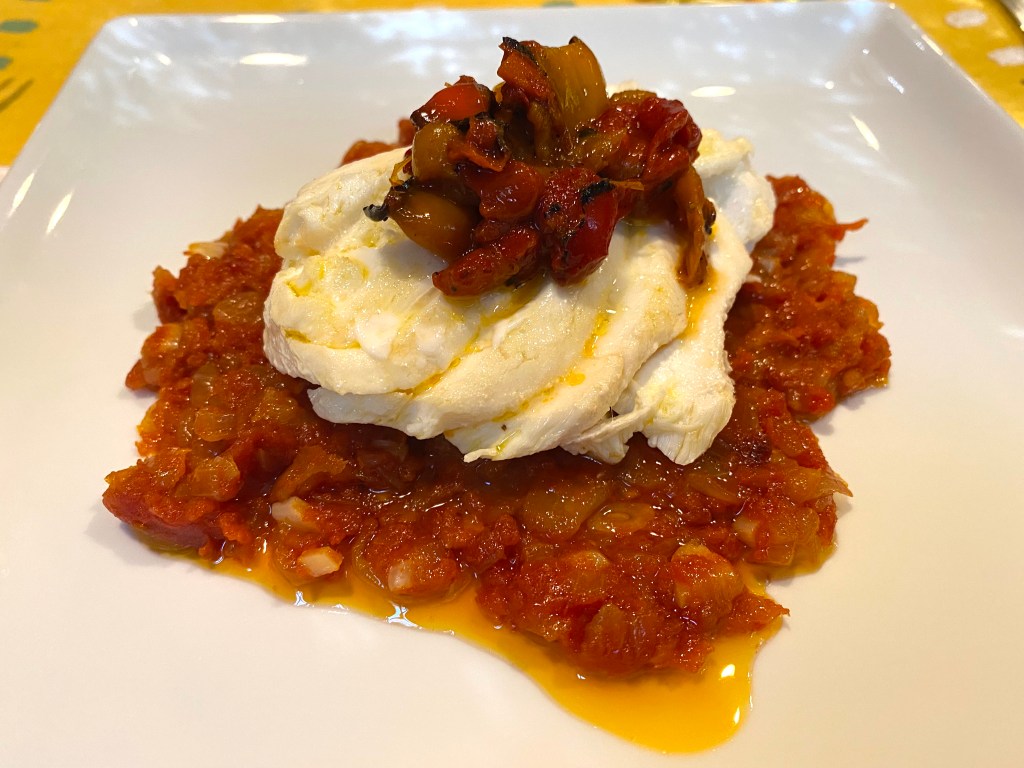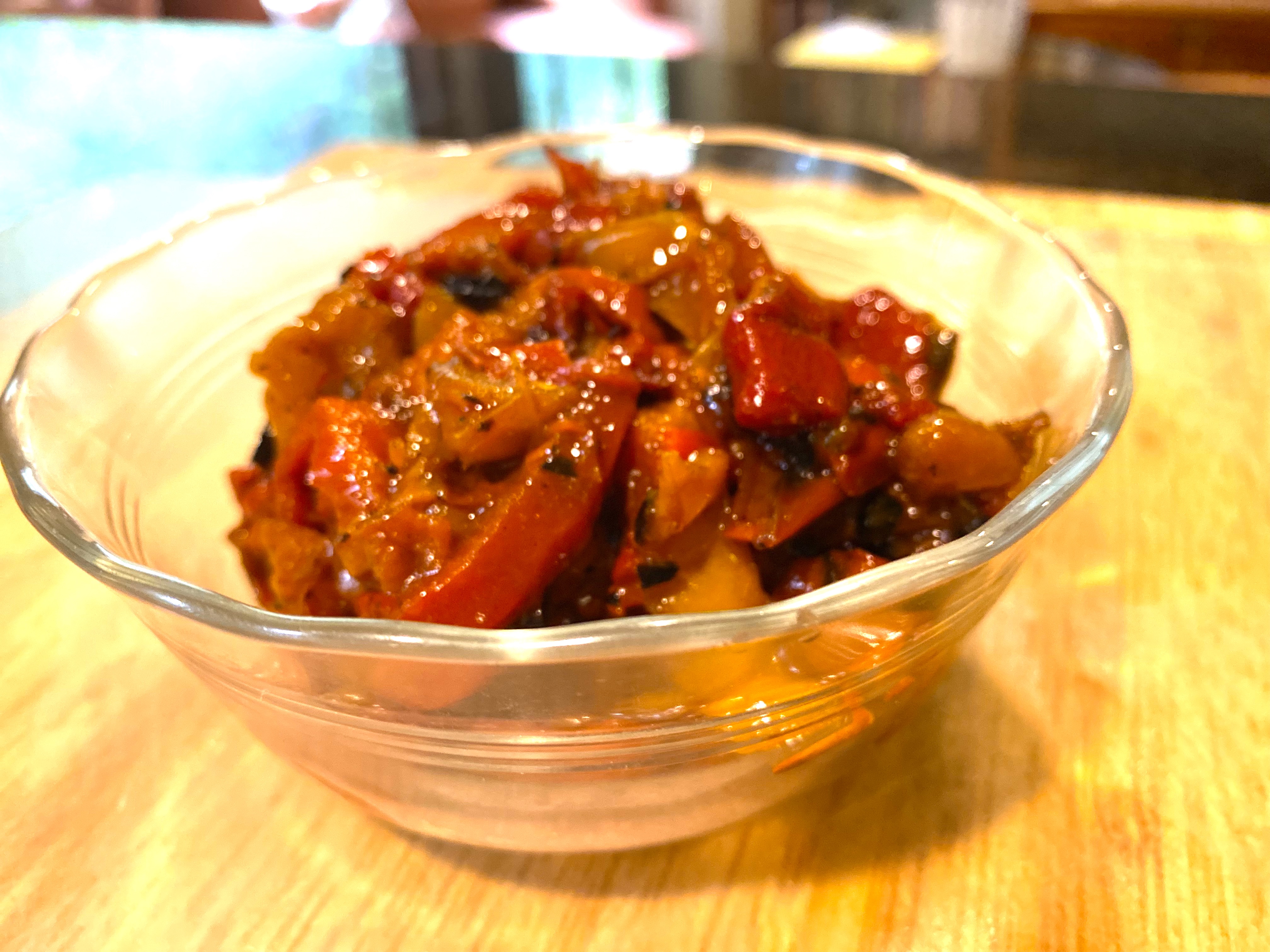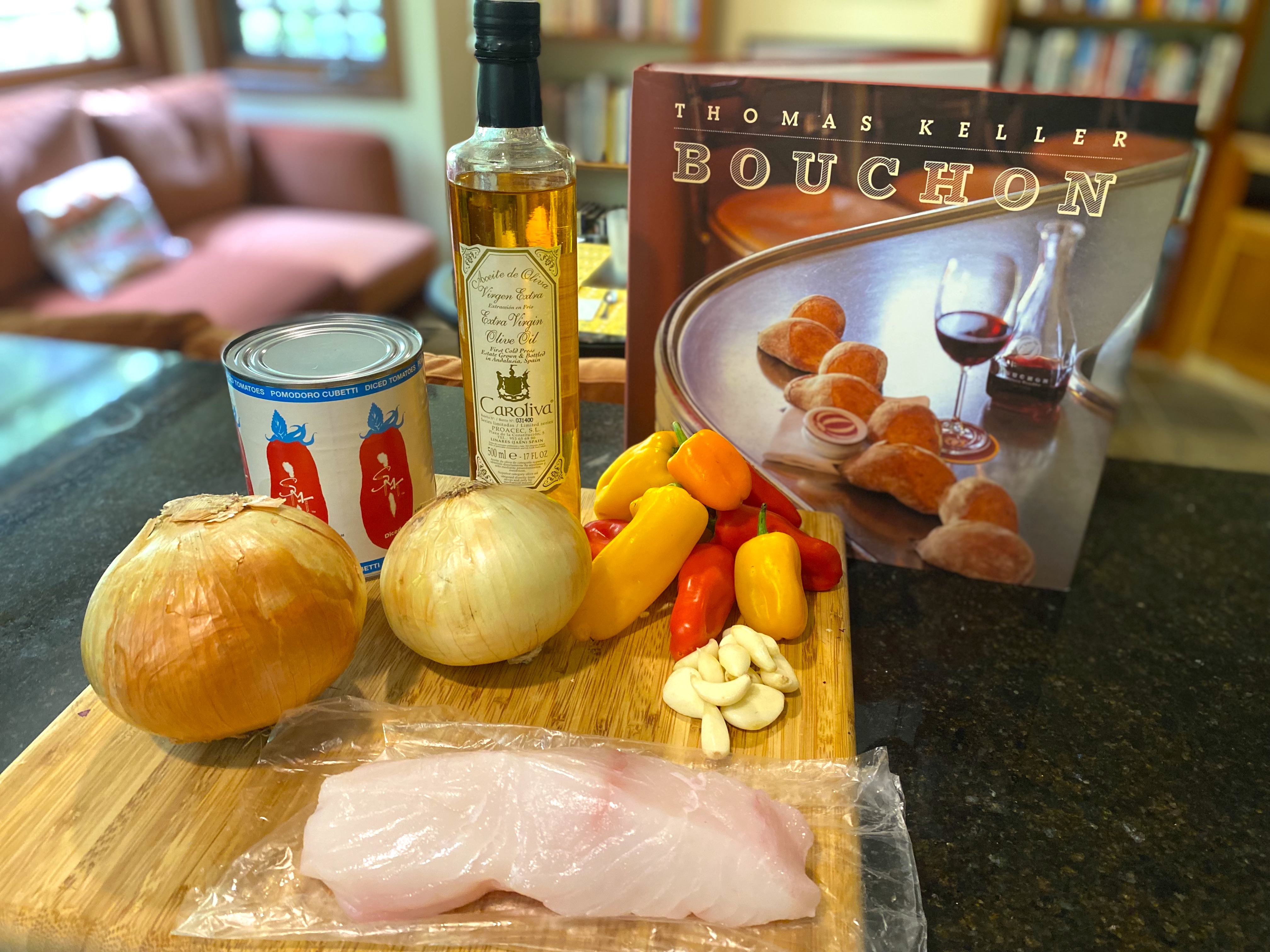 As the cookbook says, piperade is simply a combination of roasted sweet bell peppers and when combined with deeply cooked onions, becomes a “Soffritto”.