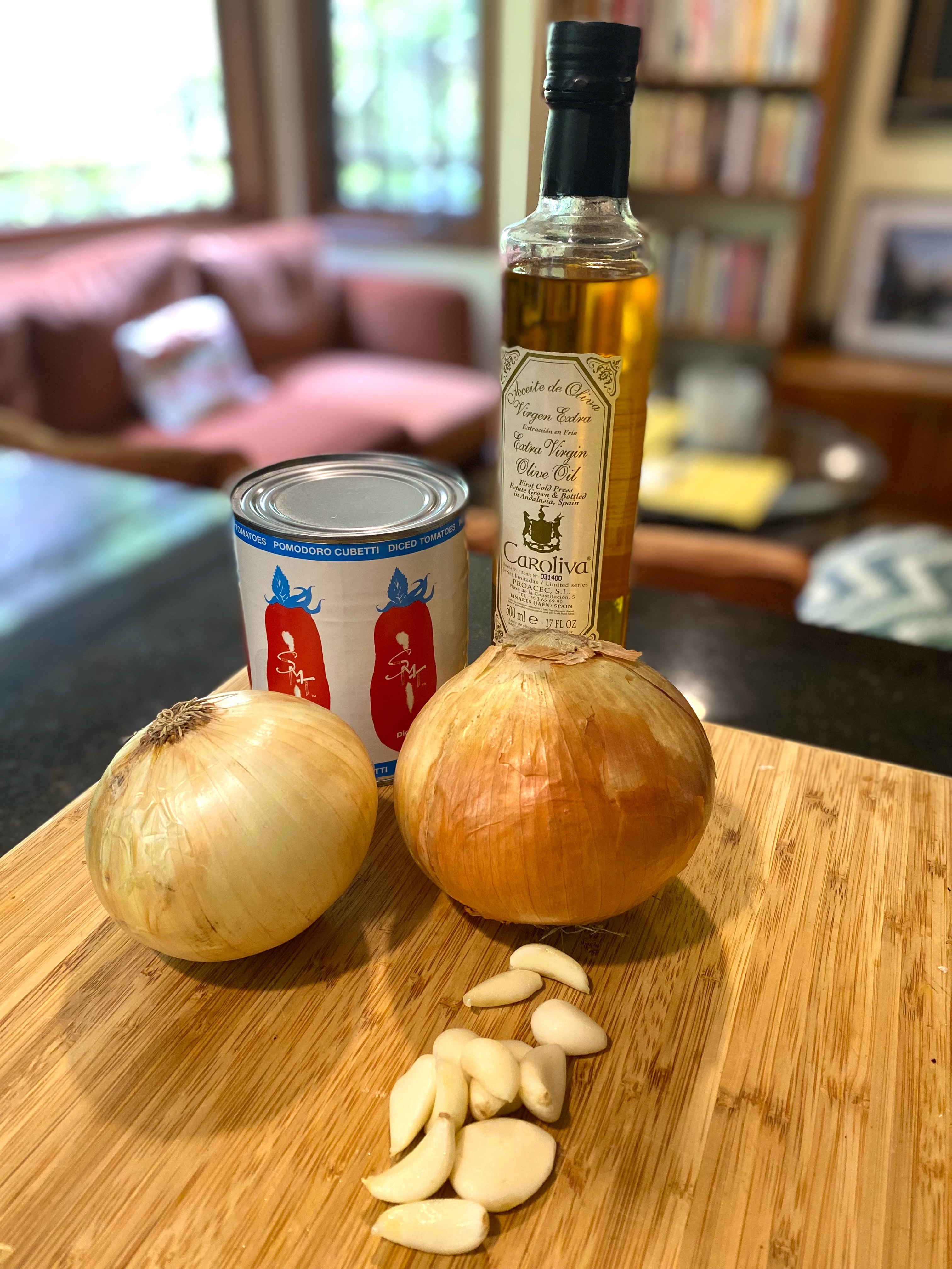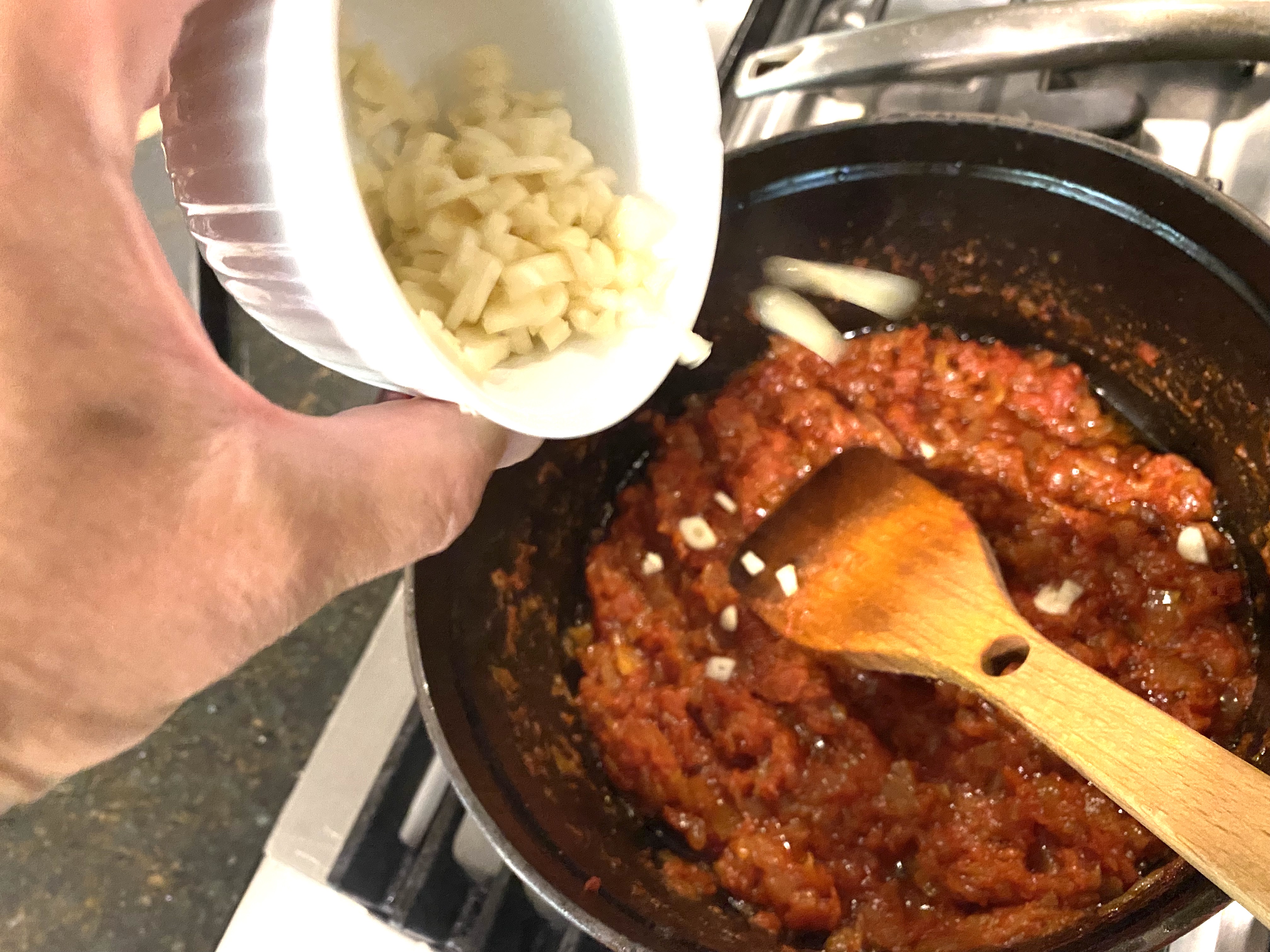 After that amount of simmering time, add more salt and the minced garlic – you’ve made a “Soffrito!”