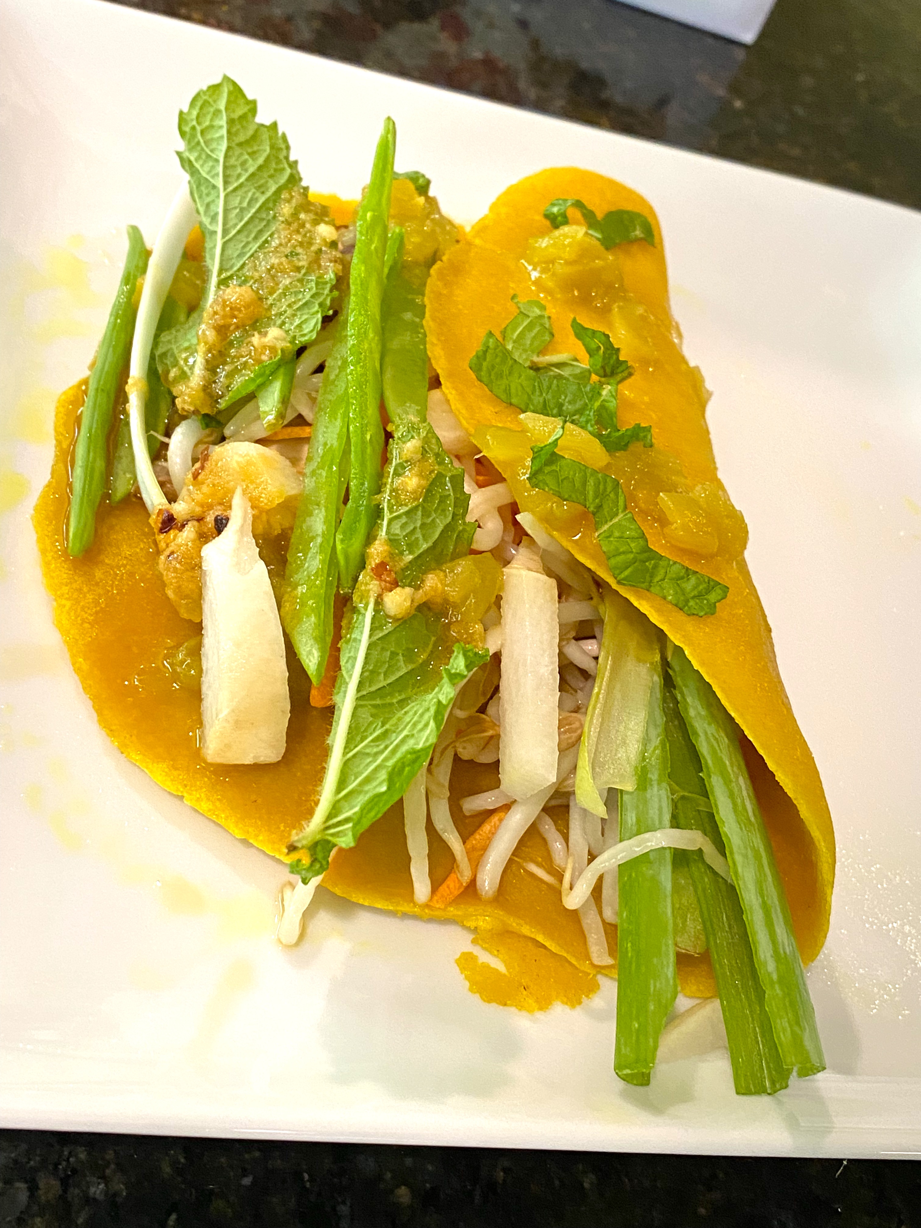 Growing up in Seattle, I ate a lot of seafood, and I enjoy cooking with it as well, as you can see here with these fish tacos: