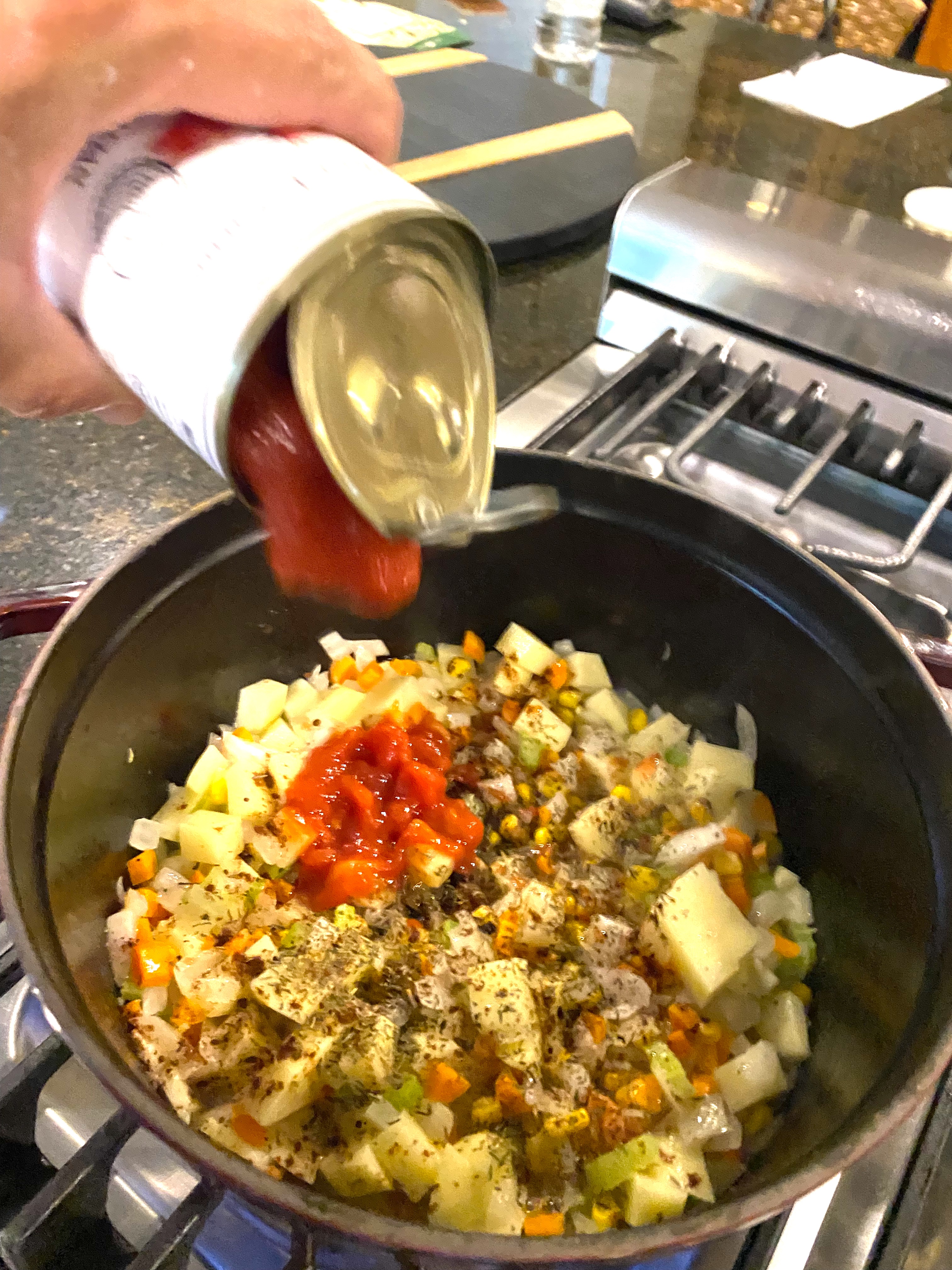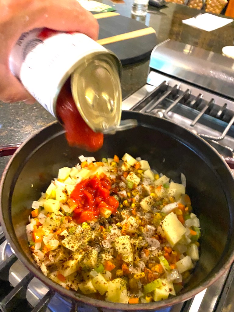 I added the diced potatoes for a few minutes, then it was time for the tomatoes: