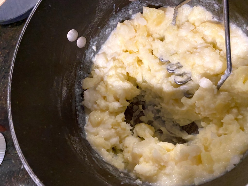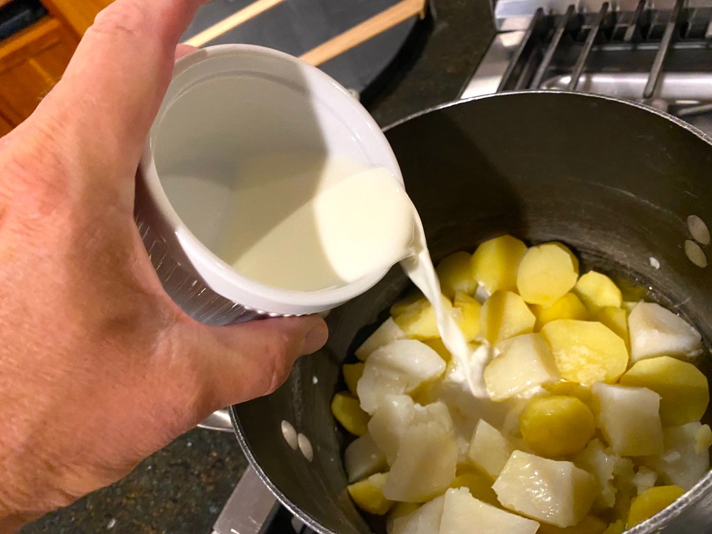 OK, everyone can make mashed potatoes…peel and cut them, boil in salted water until done, then drain the water.