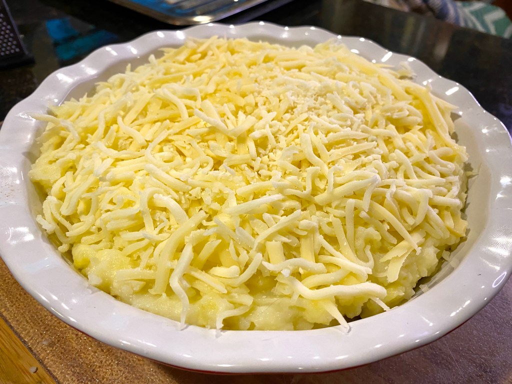 As you saw in the video, the last part is to cover the Mashed Potatoes with shredded Comté cheese.