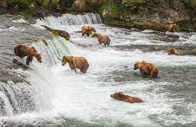 This is Alaska’s incredible Katmai National Park, home to a lot of wild animals, including these very hungry bears!