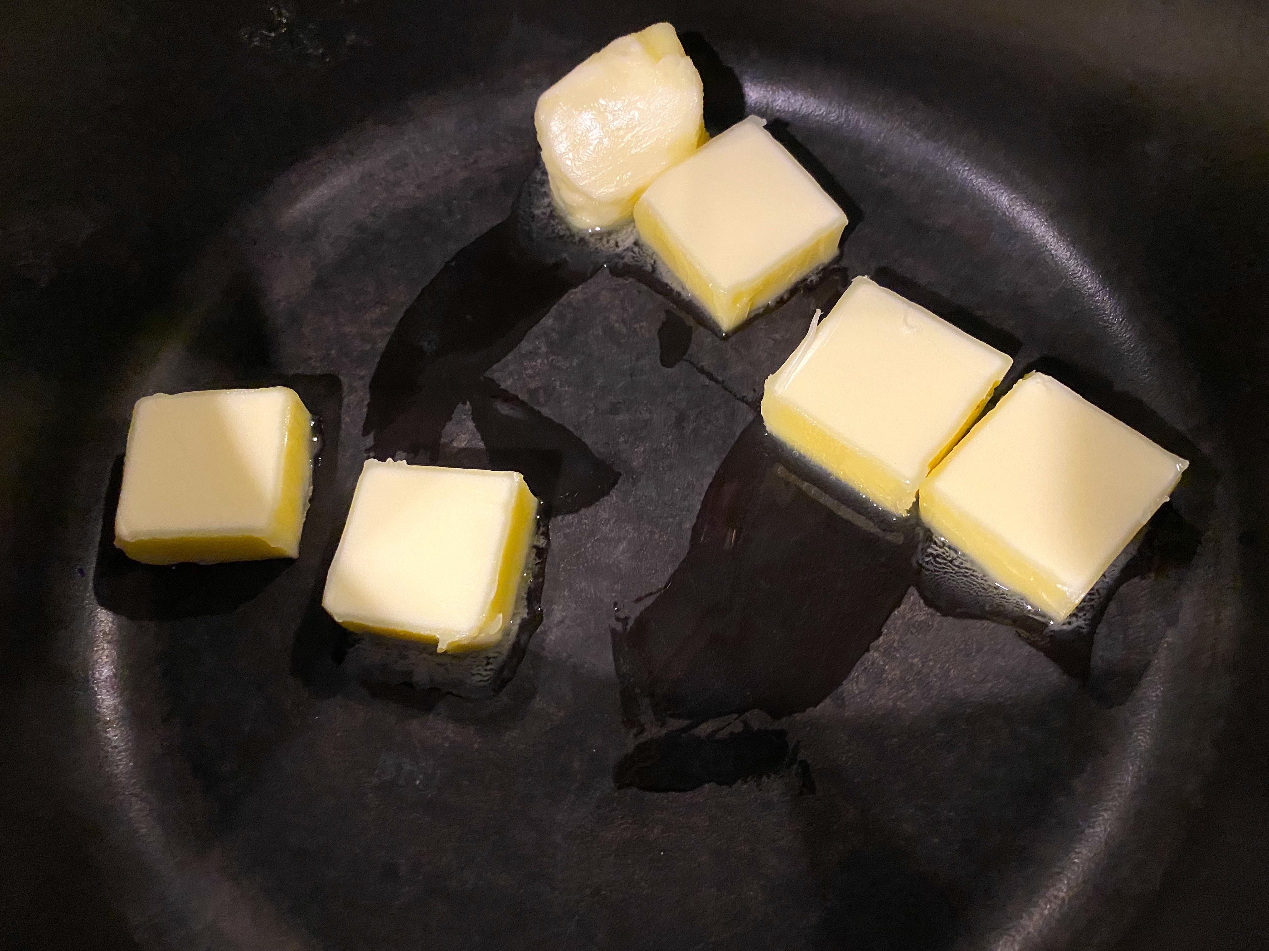 Melt your butte over medium heat so that the entire bottom of the pan is coated, then add your chicken skin side down.