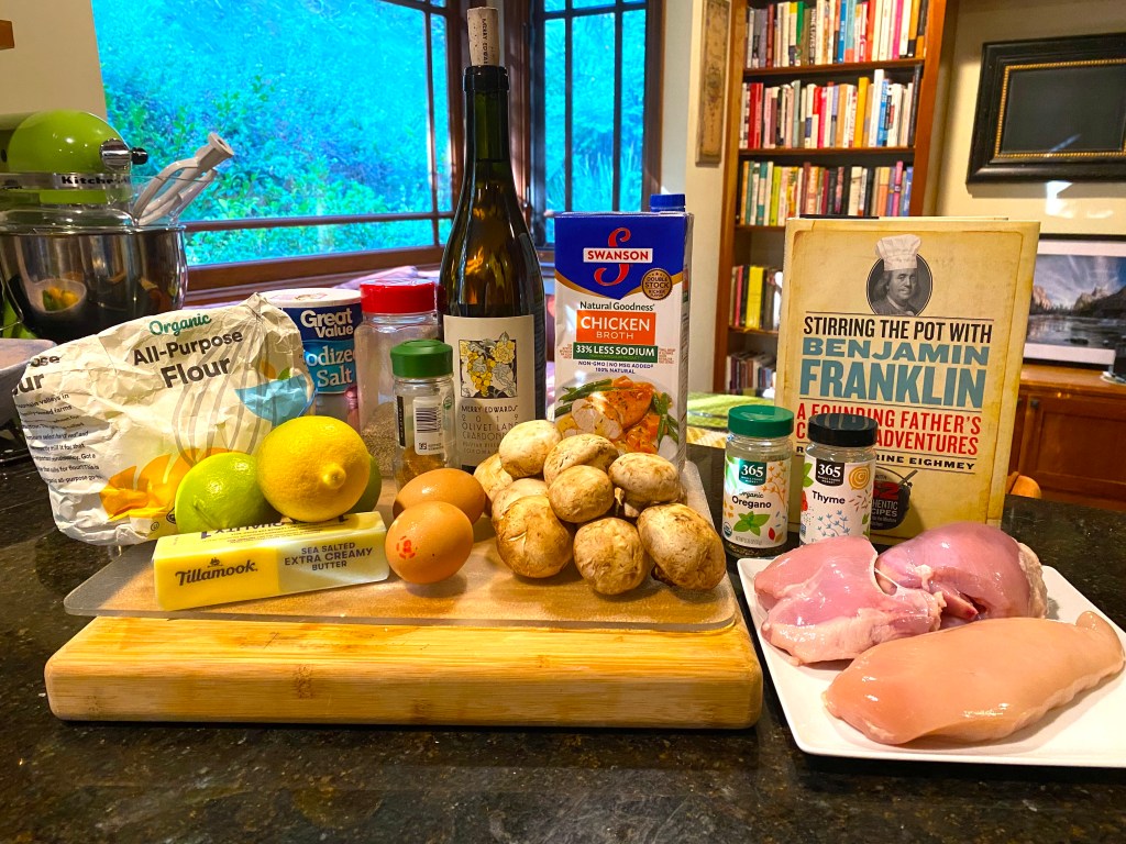 who knew ben was such a chef along with all of the other things he was? I haven’t thought of chicken fricassee in years, think I tried it as a child at a restaurant with my parents when I was pretty young, but it does look good, even if it’s boyled.