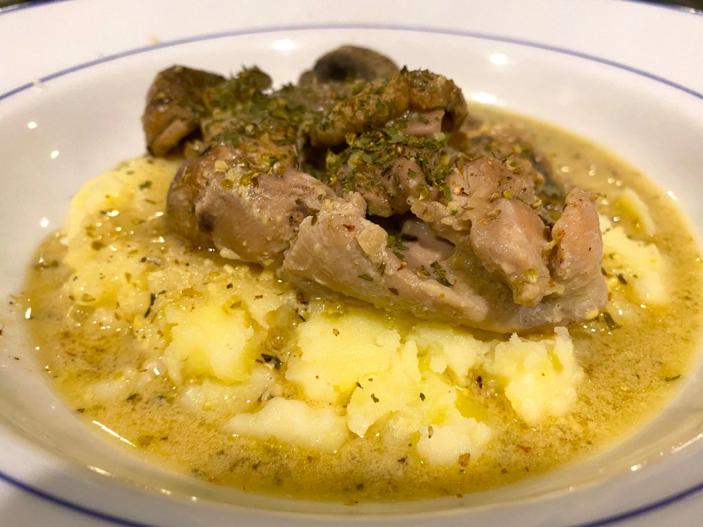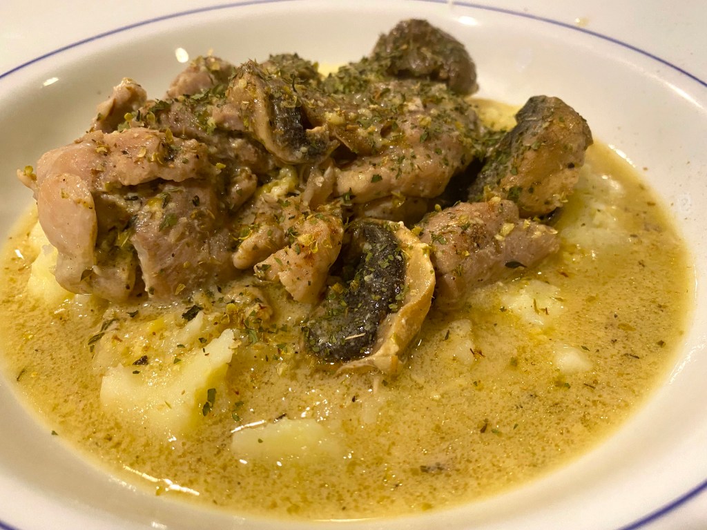 I served the chicken and sauce over mashed potatoes, but you could use noodles, rice – or even just enjoy it without nothing else!