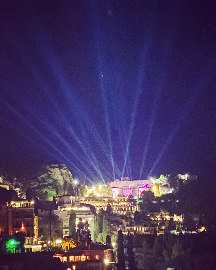 Also, check out this shot we took from the greek theater in Taormina – see what’s right behind Alex?