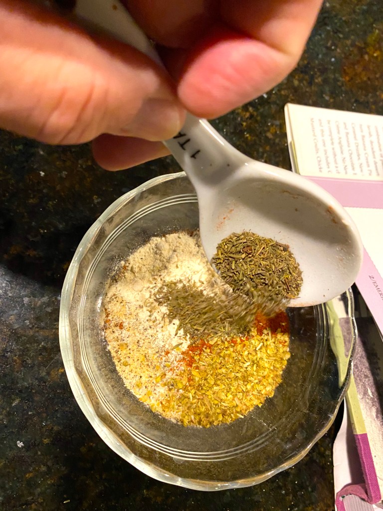 Here are the ingredients, which will give you 2/3rd of a cup when mixed – plenty for what you need for the recipe: