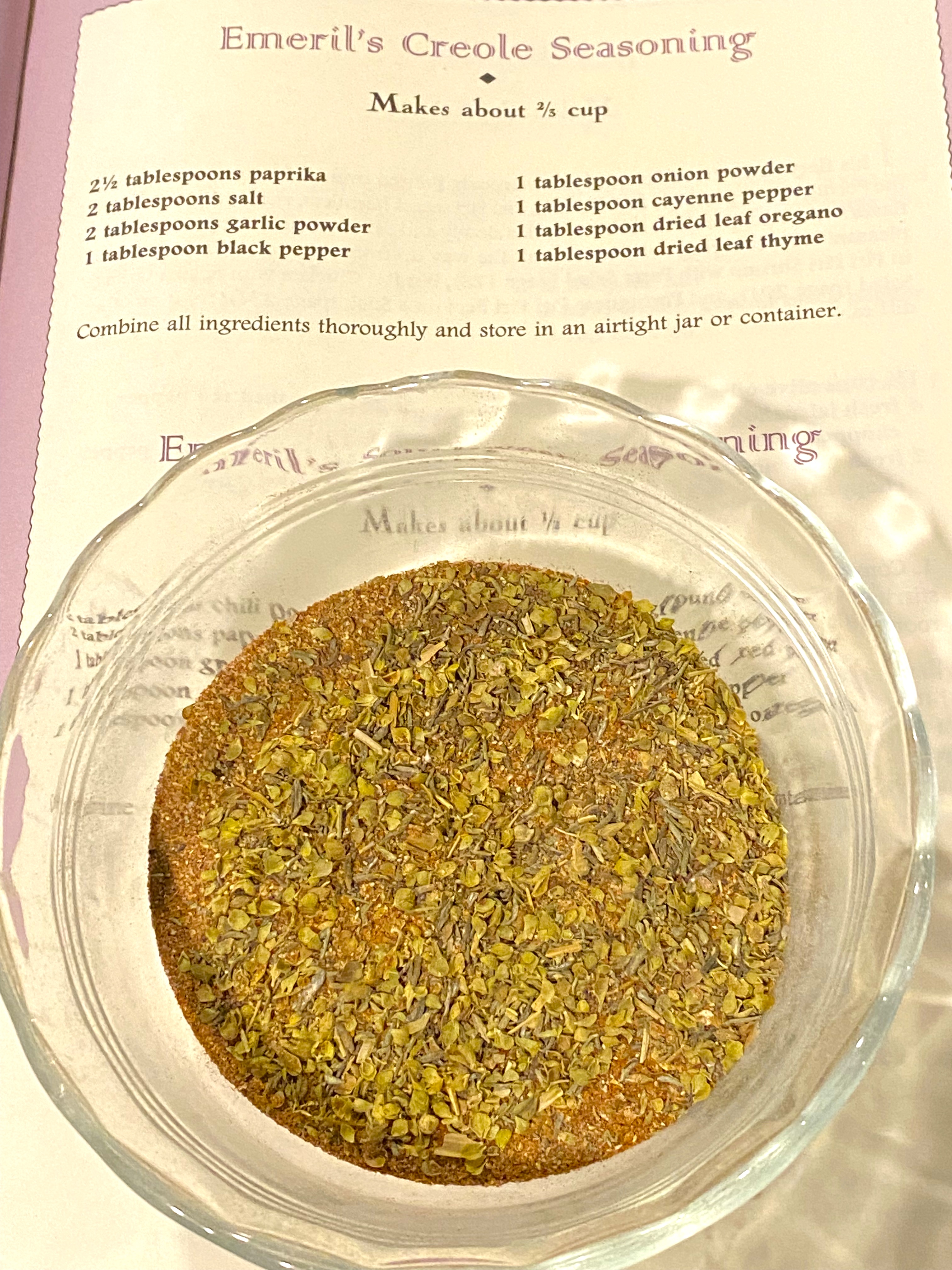 Before you begin, you must make some of Emeril’s classic “Creole Seasoning.”