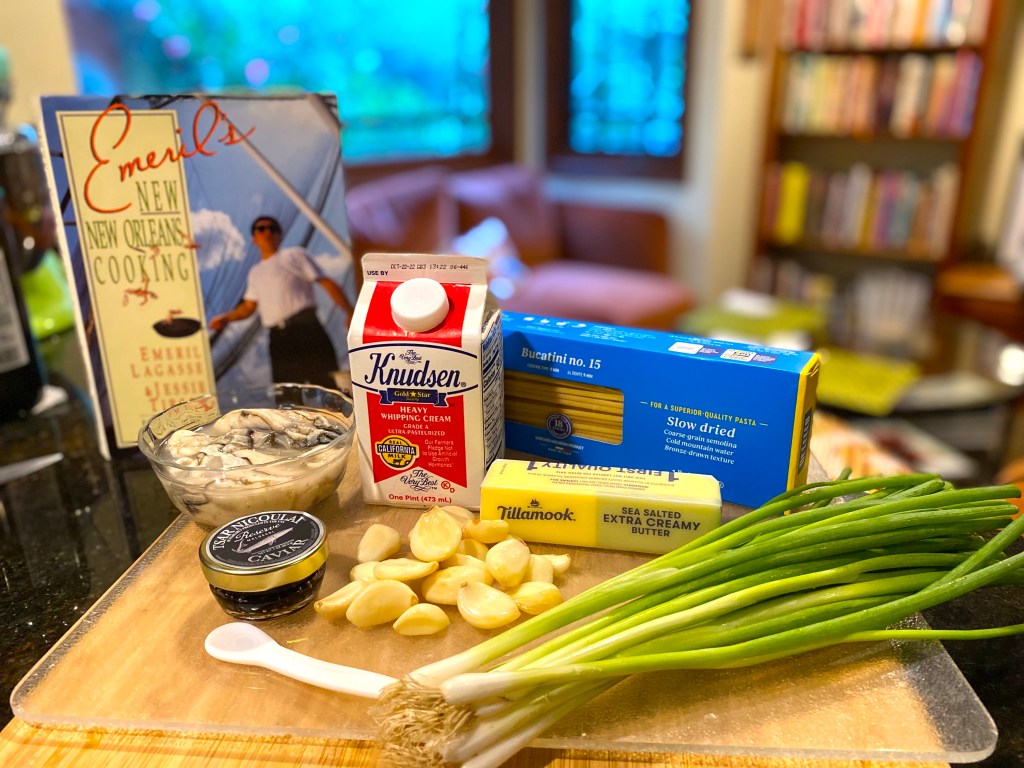 You saw how I did it – I loaded up a bowl with the pasta and oysters, topped it with a healthy dollop of caviar and sprinkled chopped green onions over the top –
