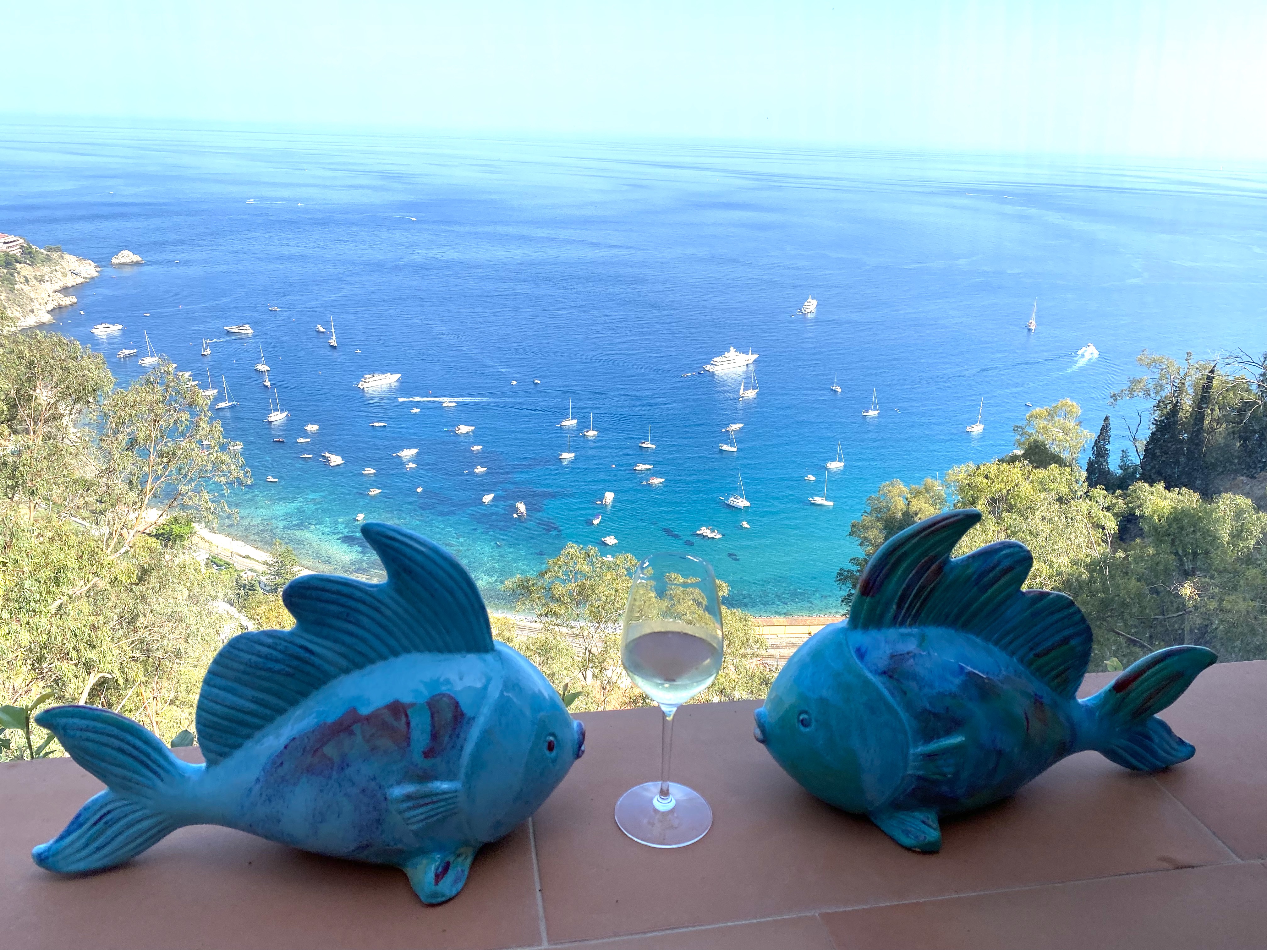 Looking out from the outdoor terrace, there is the Ionian Sea – a great view while you sip a glass of Sicilian wine…