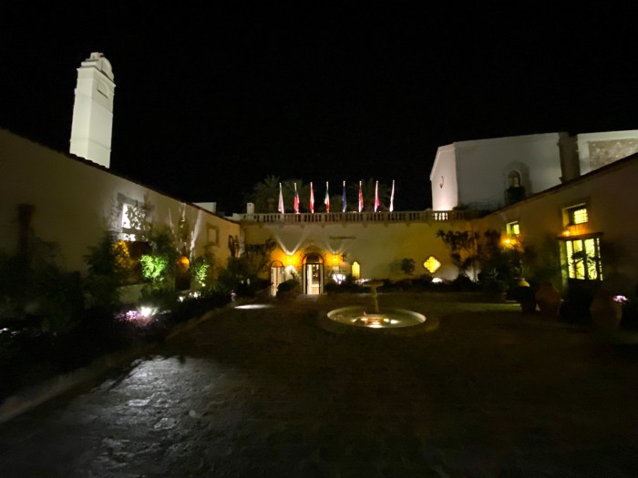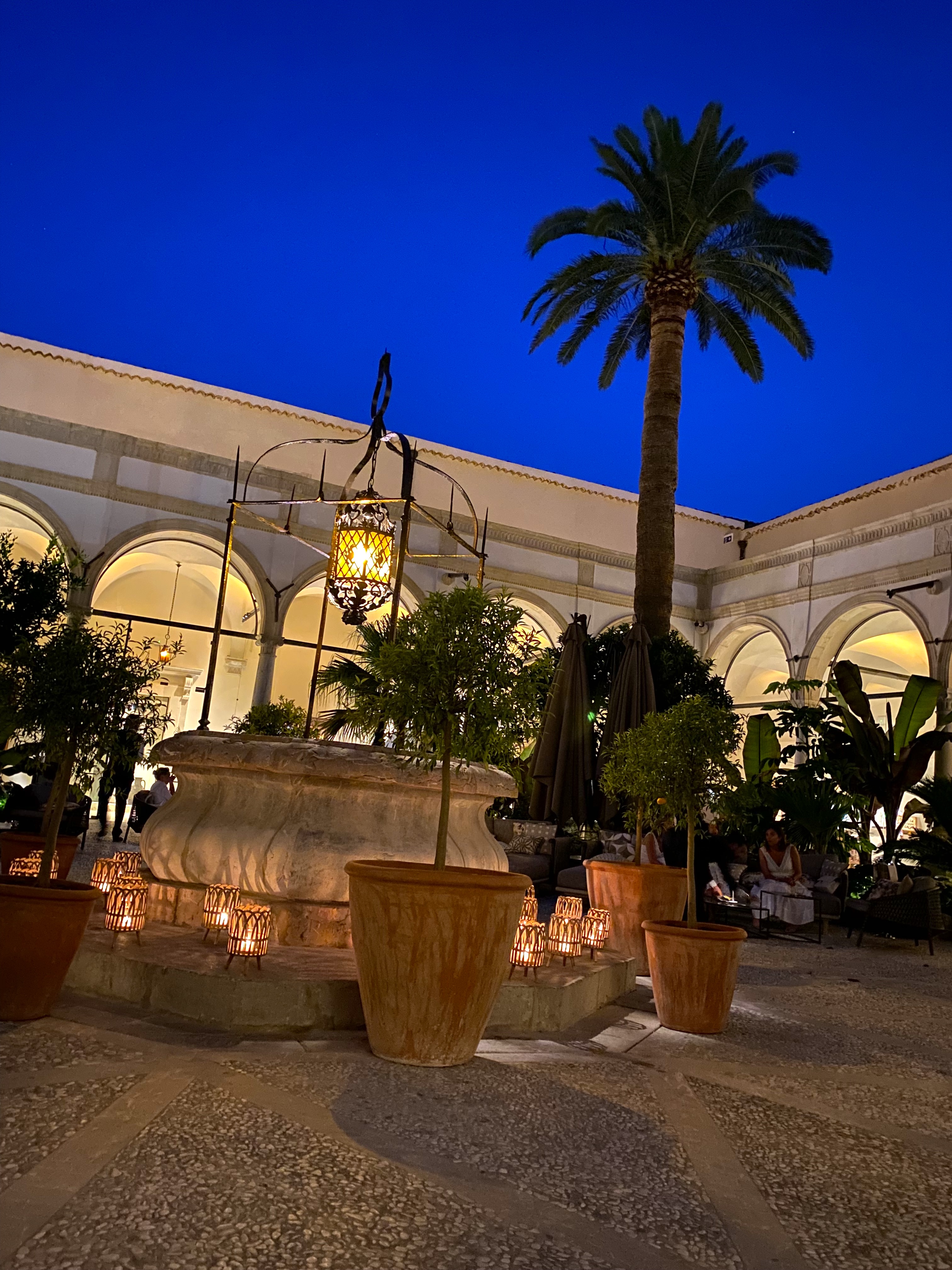 It’s a place to sit and have a drink or snacks, and as nice as it looks during the day, here is the courtyard at night: