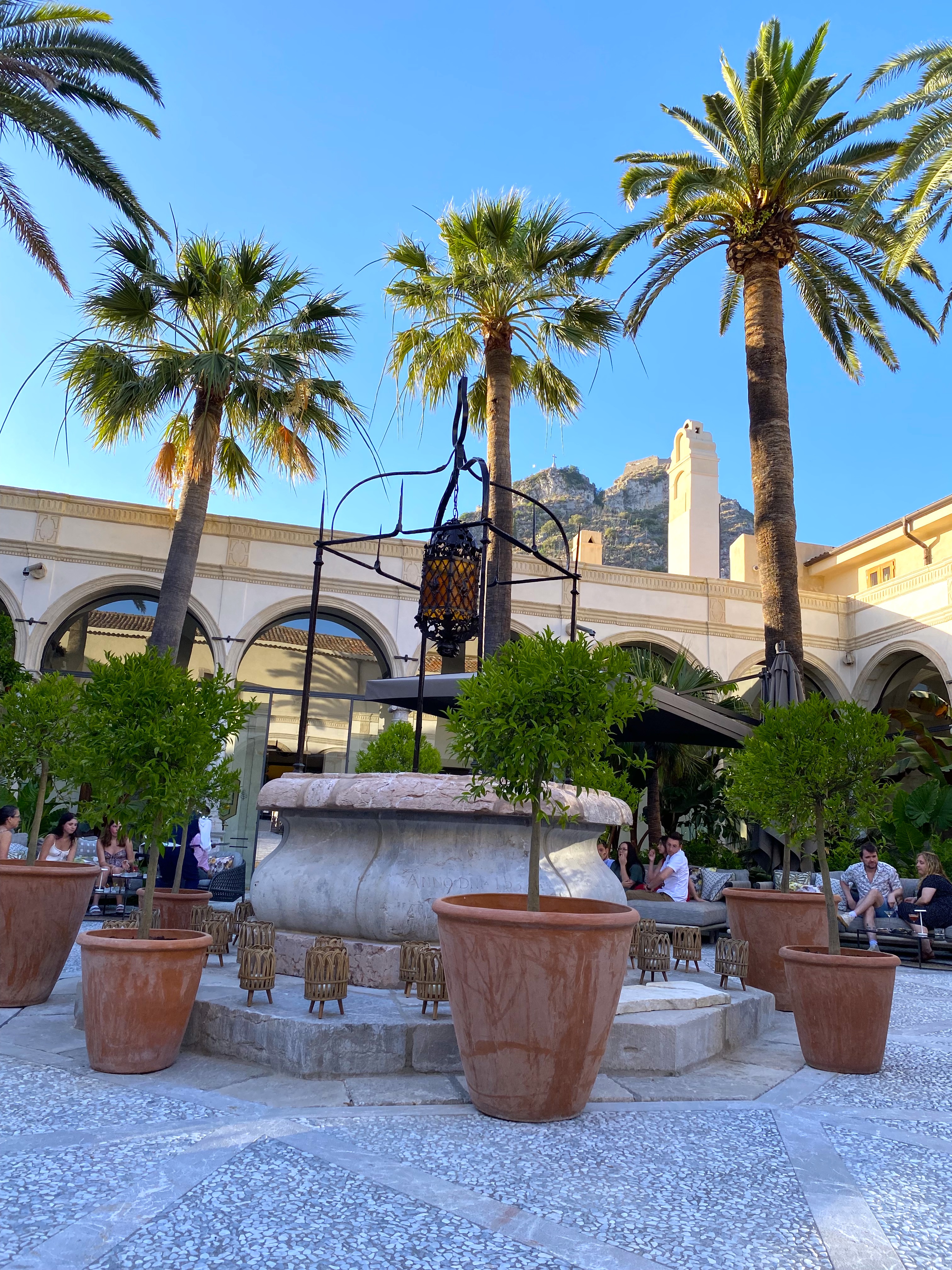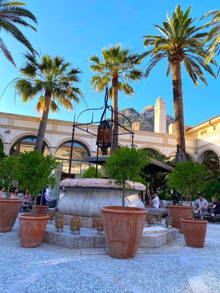 The San Domenico Palace is in the hilltop town of Taormina Sicily, and it’s getting a lot of attention right now because of a hit TV show!
