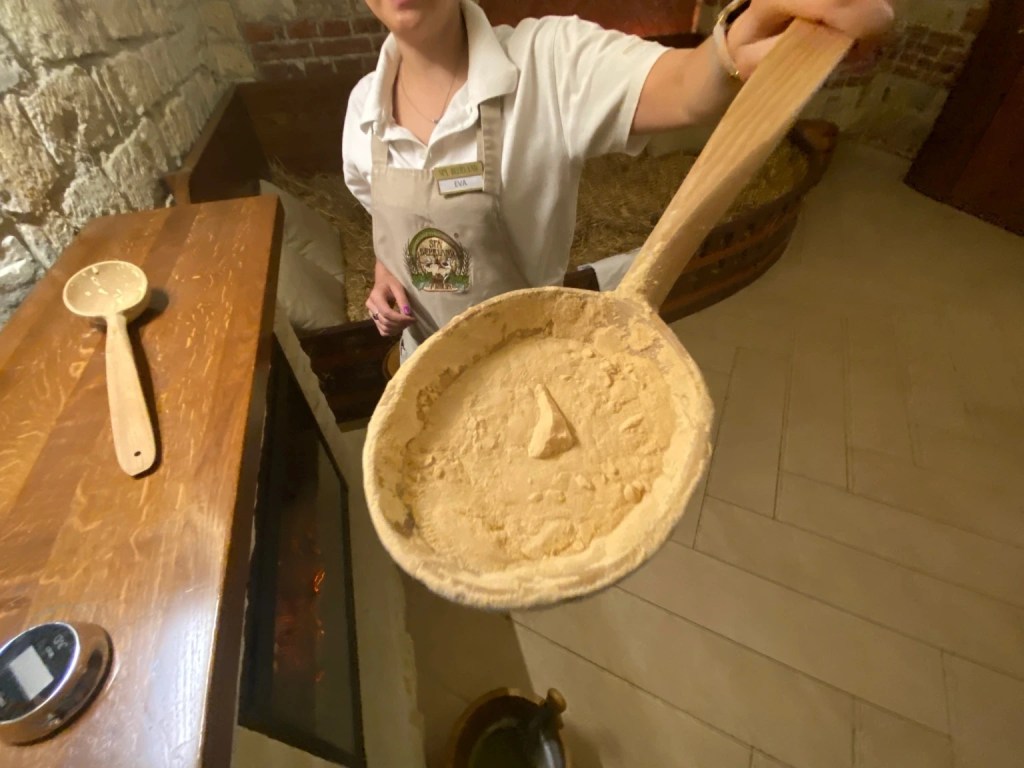 After the bath, a straw bed awaits and the Reporter notes it was fairly hard and spiky, but with another full glass of beer in her hand she managed!