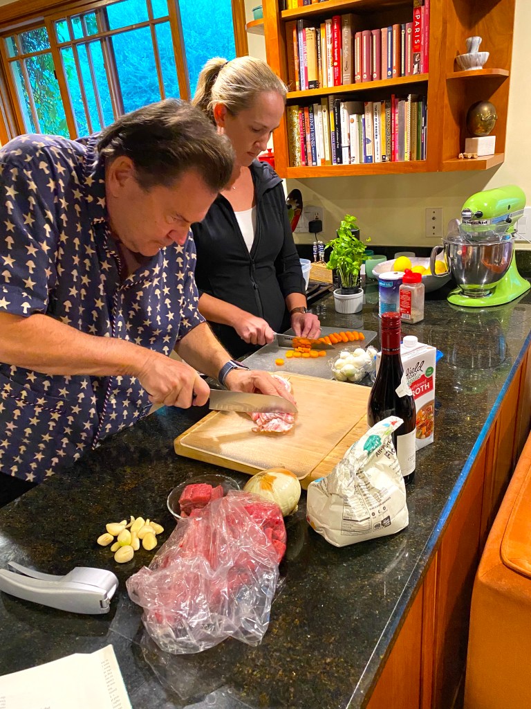 What a fun night! Jessica’s Sister-In-Law Eleanor was excited to help me cook – and Jessica was going to capture it all on video and behind-the-scenes photos – and a glass or two of Champagne!