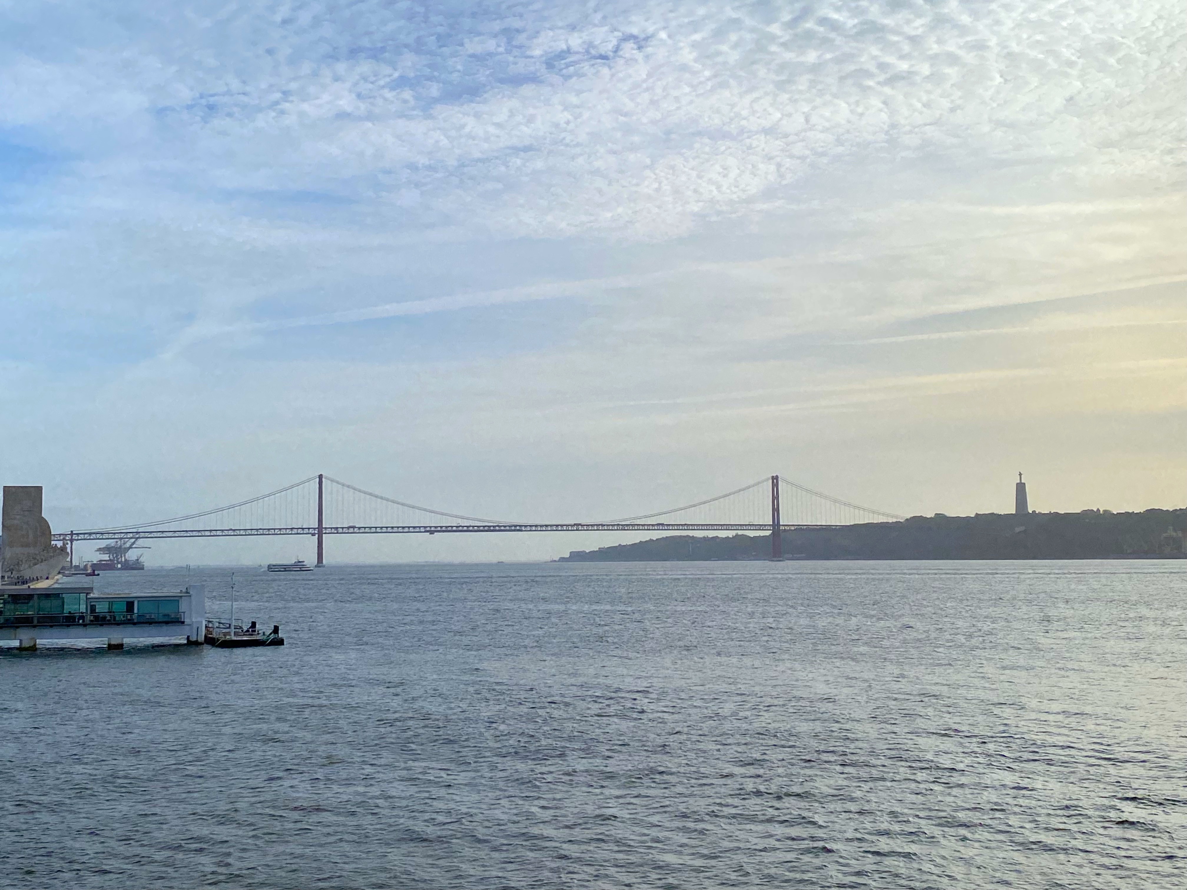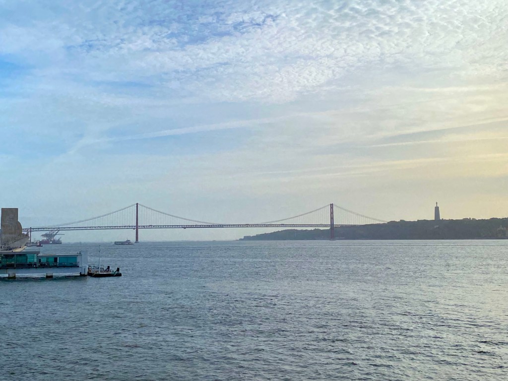 Yes, their bridge evokes the iconic Golden Gate Bridge, and crosses over the Tagus river, which is the longest river on the Iberian Peninsula.