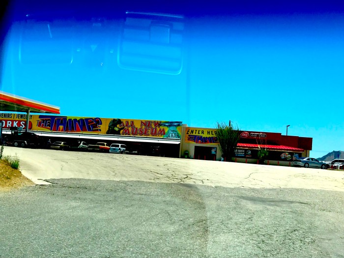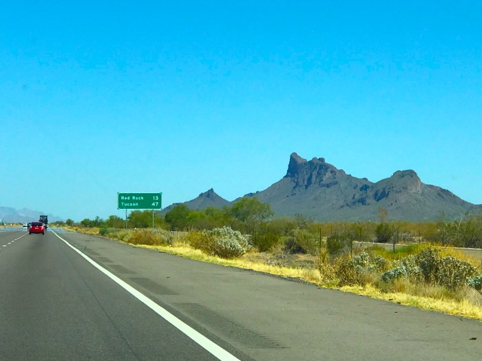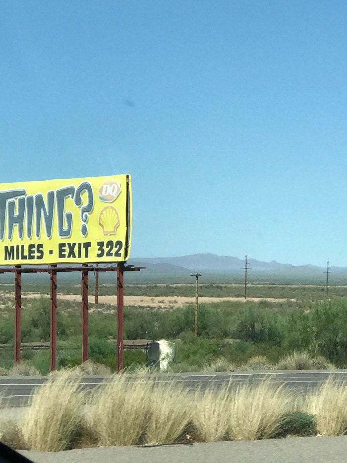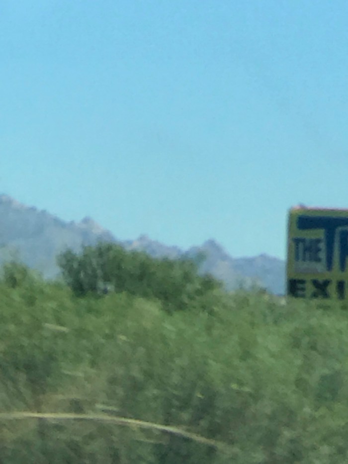 See what I see? It’s part of a roadside sign, one that eluded me for almost a hundred miles…it all began as I was driving cross-country with my son, and just outside Tucson, Arizona I was taking shots of some of Arizona’s unique rock formations: